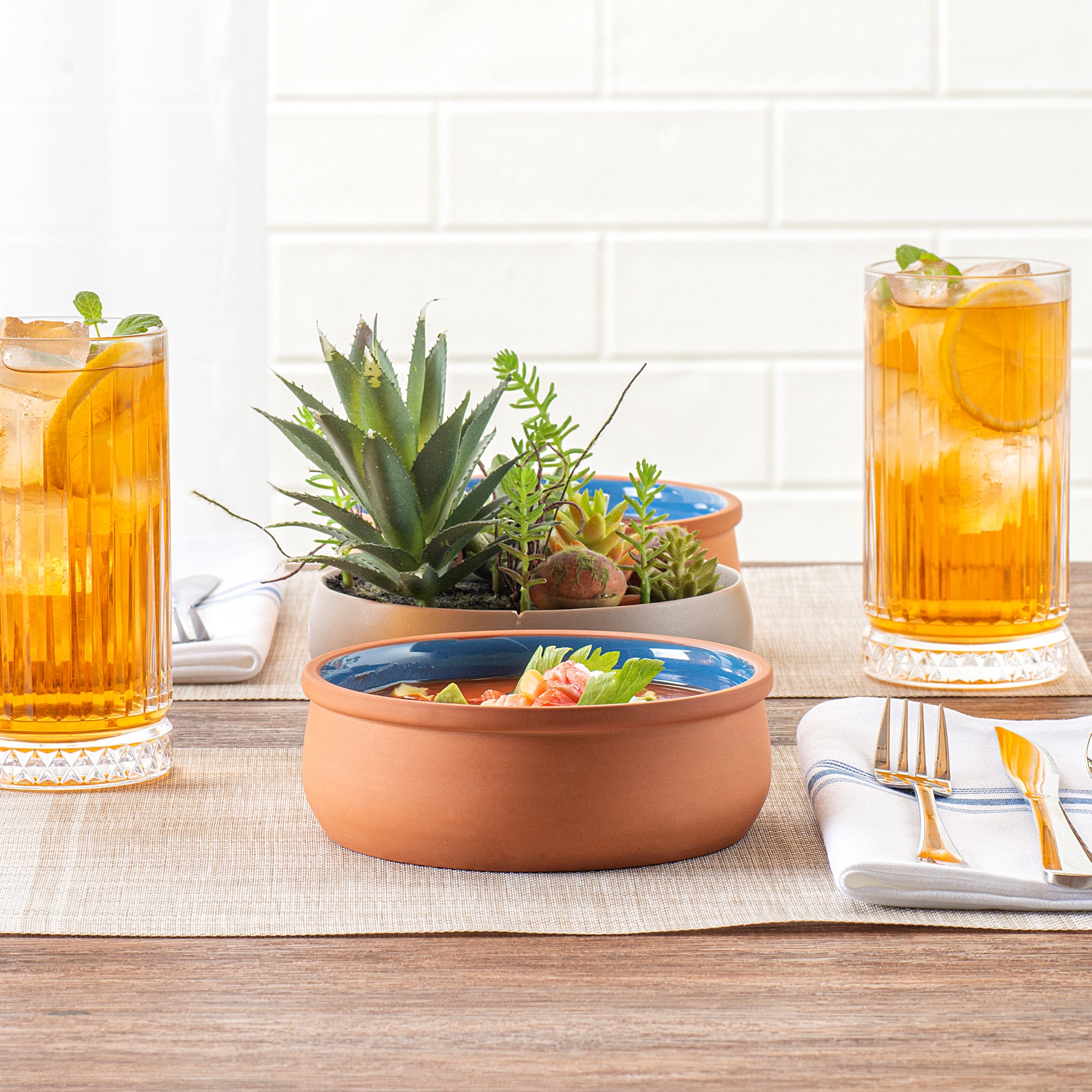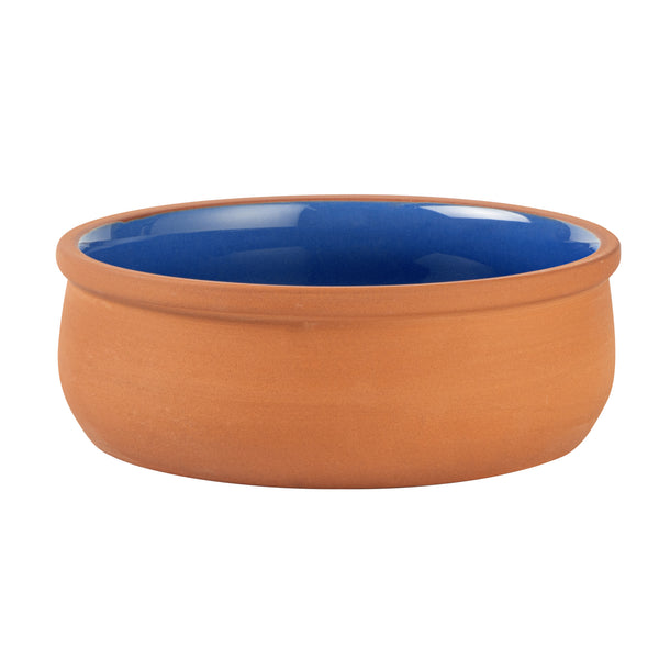 17 OZ TERRACOTTA CAZUELA BOWL - BLUE GLAZED INTERIOR, OVEN-SAFE