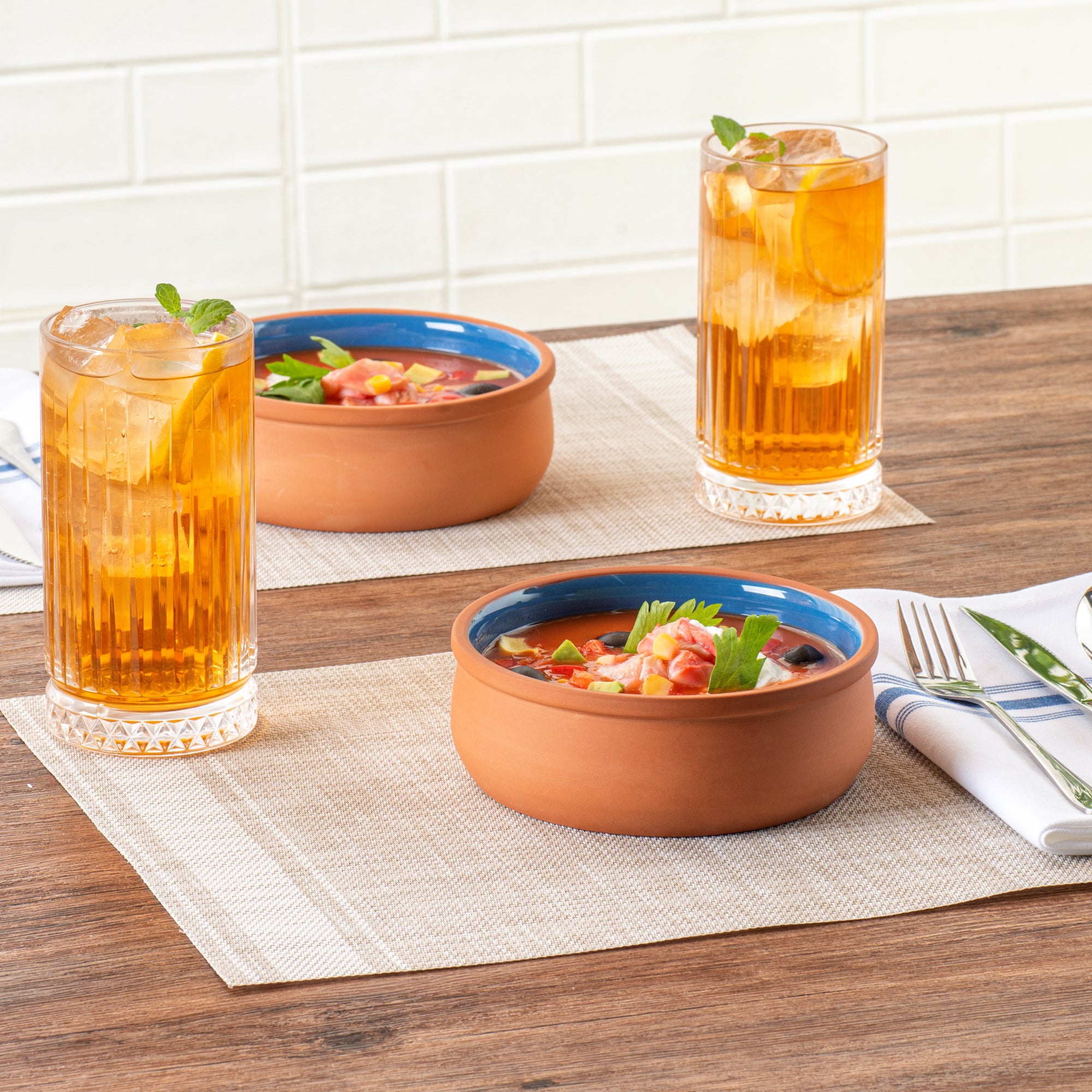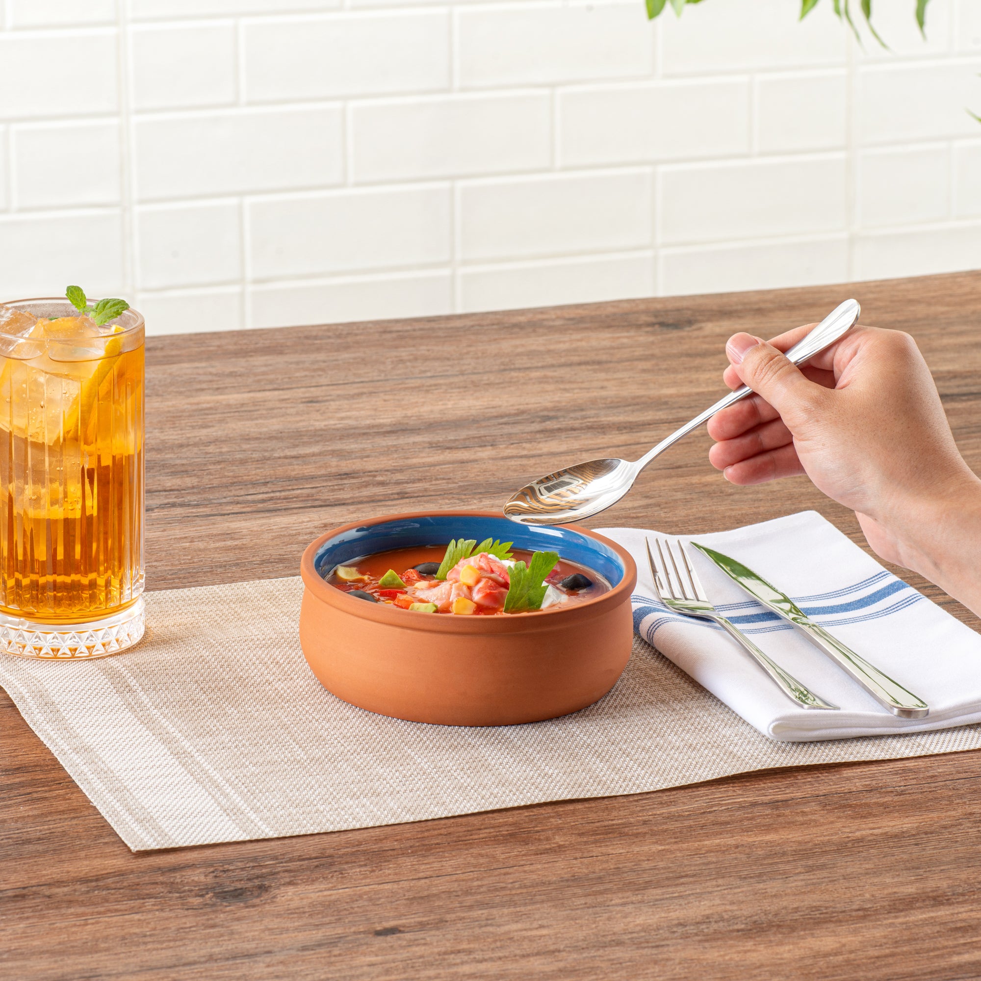 Enhance your restaurant's presentation with vibrant dishware. The Terra Tek Glazed Interior Terracotta Cazuela is designed with a stunning blue glazed interior, elevating the visual appeal of every meal served in this terracotta cazuela. Its dishwashable design enables quick cleanup, significantly reducing labor costs and increasing operational efficiency. Crafted from durable terracotta, this cazuela withstands high temperatures, making it ideal for versatile use from oven to freezer, and ensuring longevity in commercial settings. With a generous 17-ounce capacity and a 5.75-inch diameter, it provides ample space for a variety of dishes, from tapas to individual desserts, making it the perfect tapas serving bowl. The combination of its durability, aesthetic appeal, and practicality makes it a must-have for any foodservice establishment looking to impress guests with presentation and efficiency. Each order includes 2 Terra Tek Glazed Interior Terracotta Cazuela.