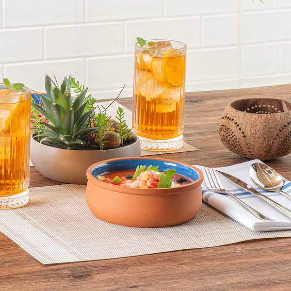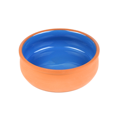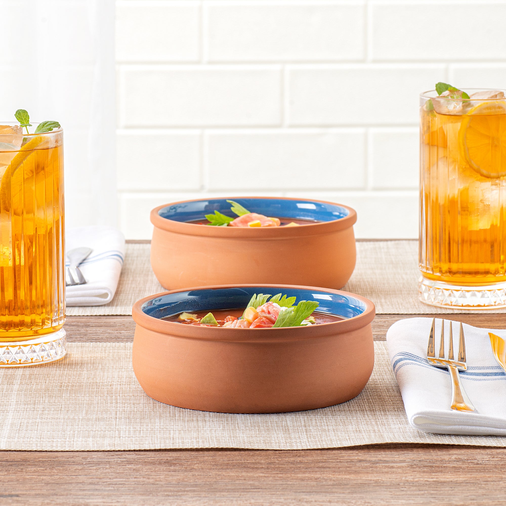 17 OZ TERRACOTTA CAZUELA BOWL - BLUE GLAZED INTERIOR, OVEN-SAFE