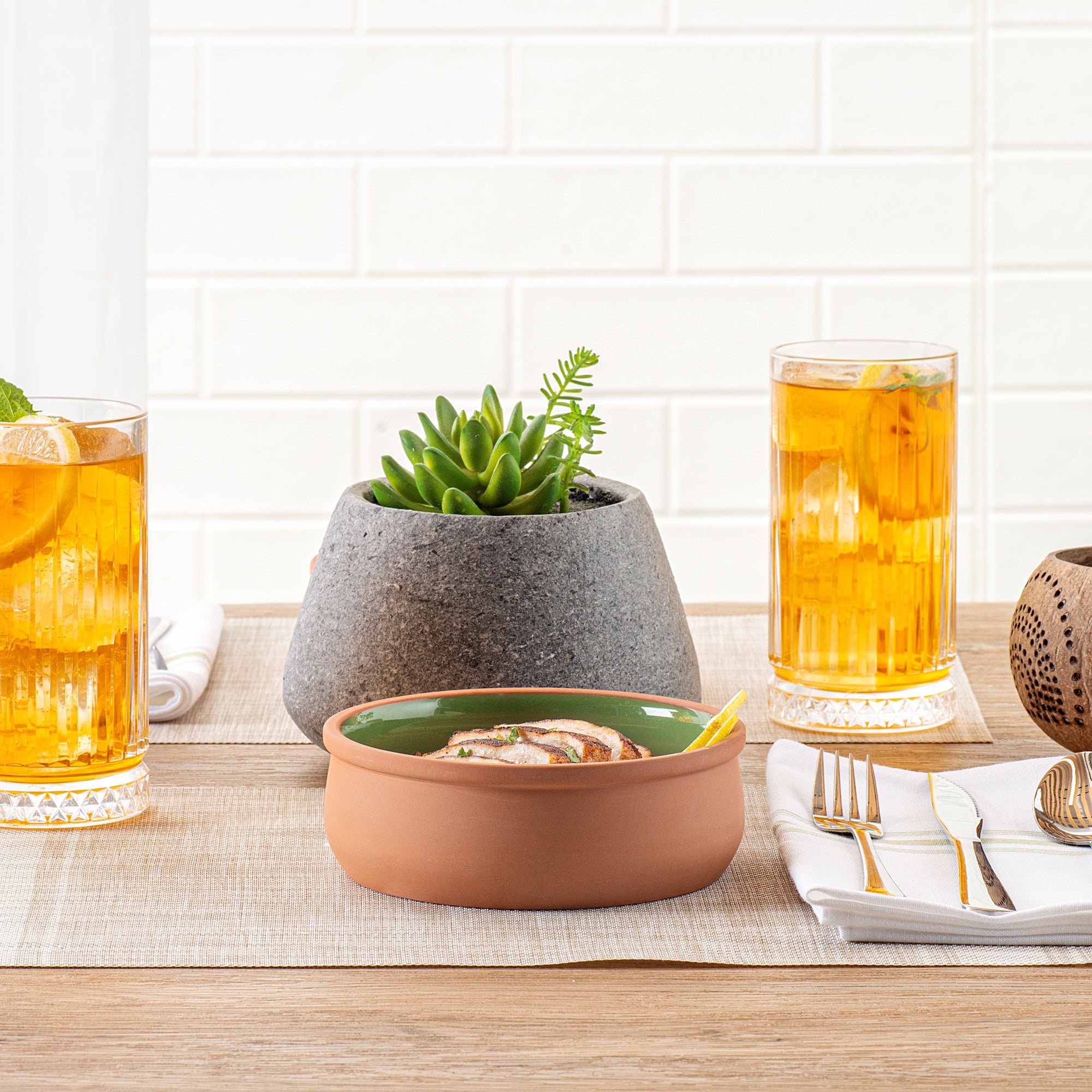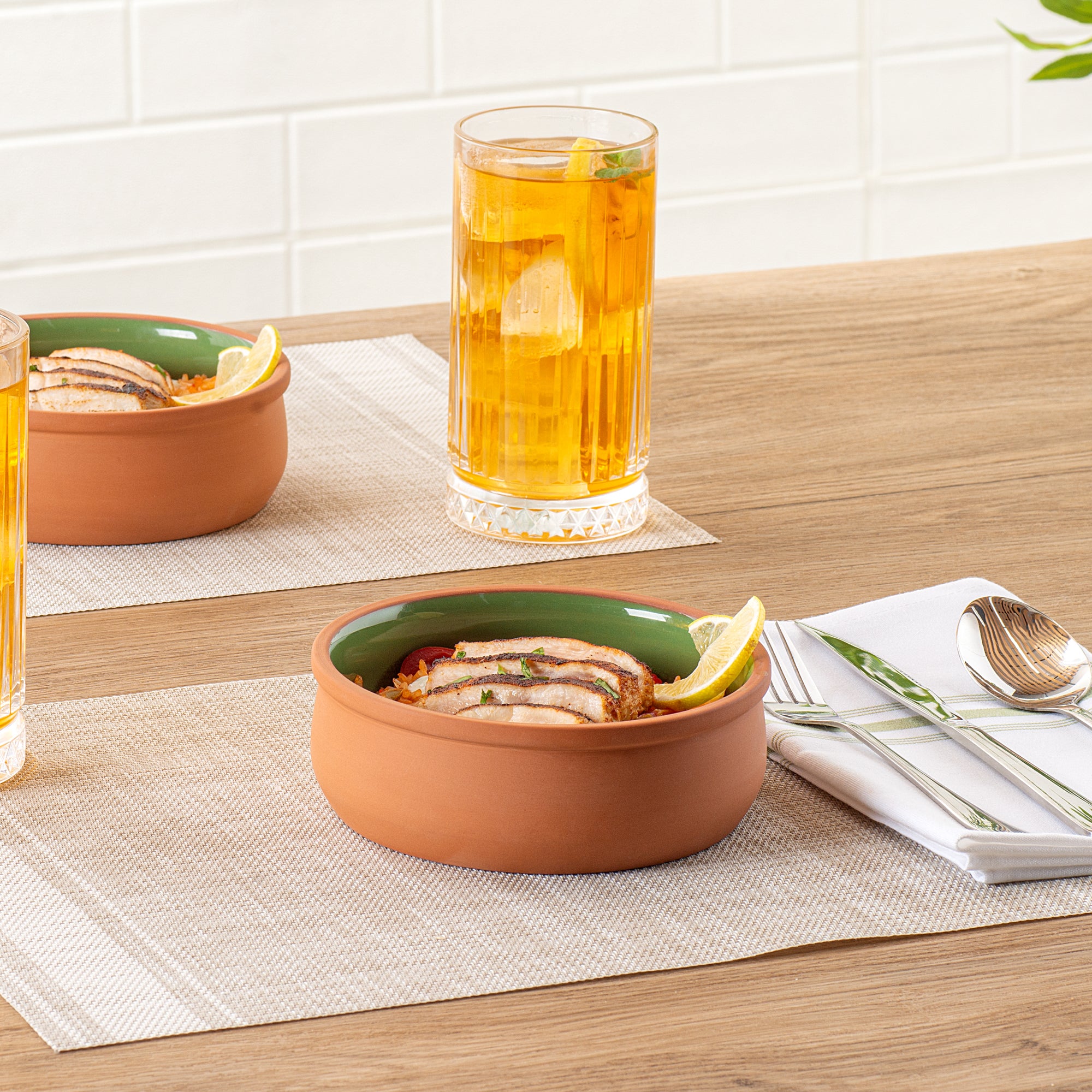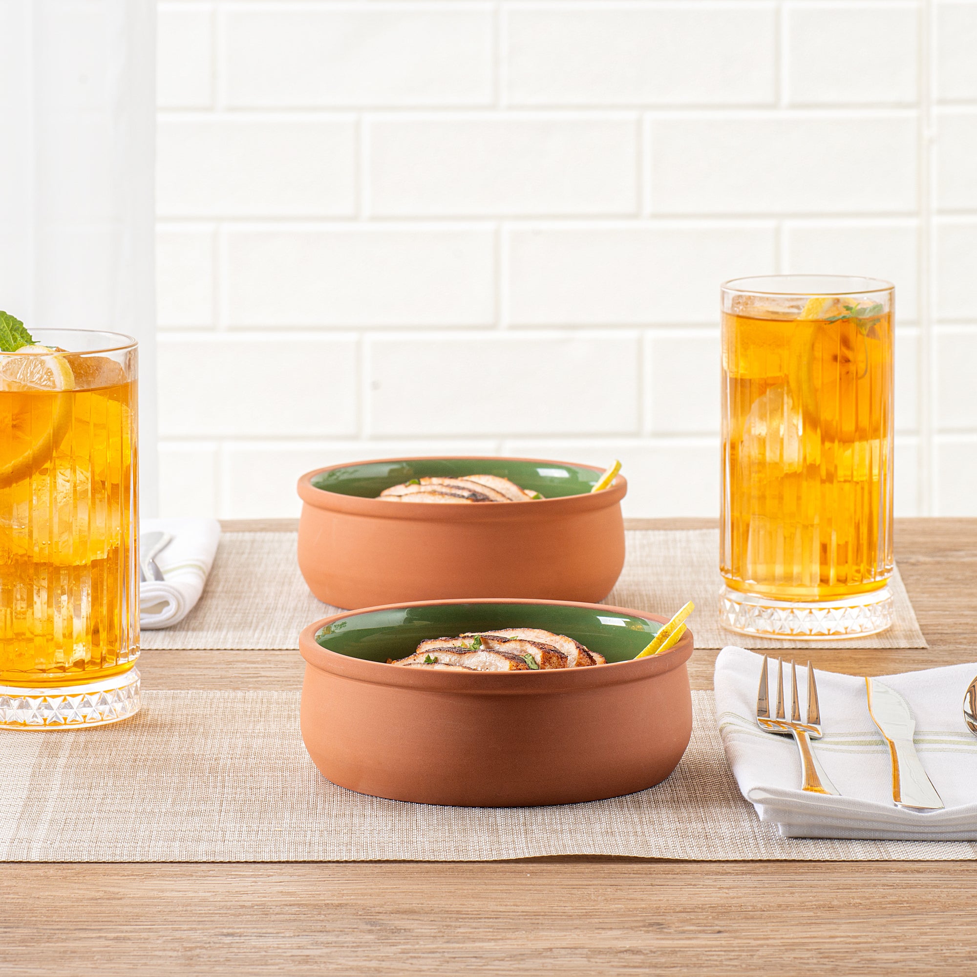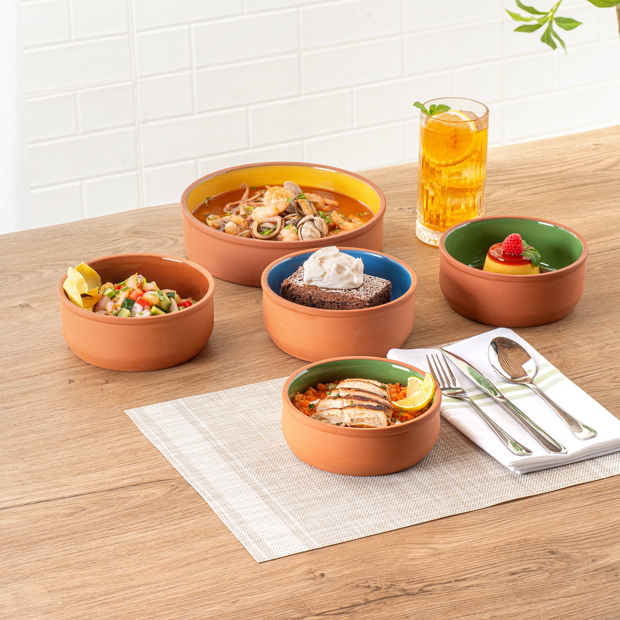Introducing our Terra Tek 17-ounce Terracotta cazuela bowls to elevate your food presentation and provide a versatile cooking experience. Crafted from durable terracotta, these recyclable cazuela bowls are perfect for withstanding high temperatures and maintaining their integrity. Glazed with a stunning green finish, the interior of these terracotta cazuelas adds a touch of elegance and sophistication to your gourmet kitchen bowl collection. Oven-ready and designed for convenience, these cooking bowls make meal preparation a breeze, whether you're baking or serving up delicious dishes. These microwavable cooking bowls allow for quick reheating of your culinary creations without sacrificing taste or quality. Freezable and dishwashable, these greaseproof glazed bowls are designed for easy storage and cleanup, making them ideal for busy kitchens and catering businesses alike. With a generous capacity of 17 ounces, these reusable cooking bowls are perfect for serving a variety of dishes, while the dimensions of 5.75 inches in diameter by 2 inches in height ensure a compact and efficient use of space. Sold in a 2 count box.