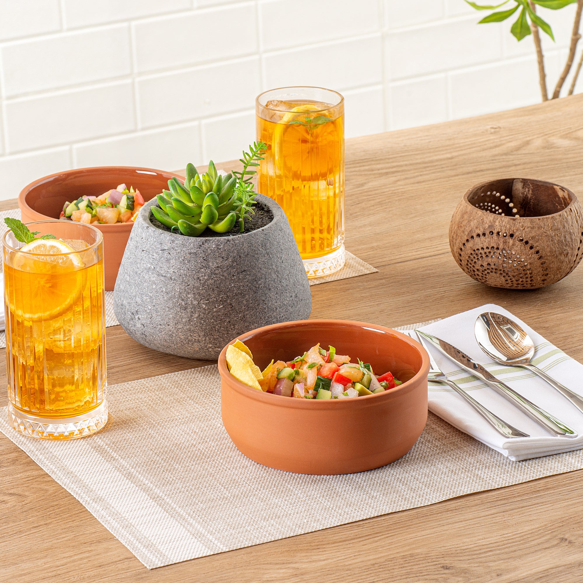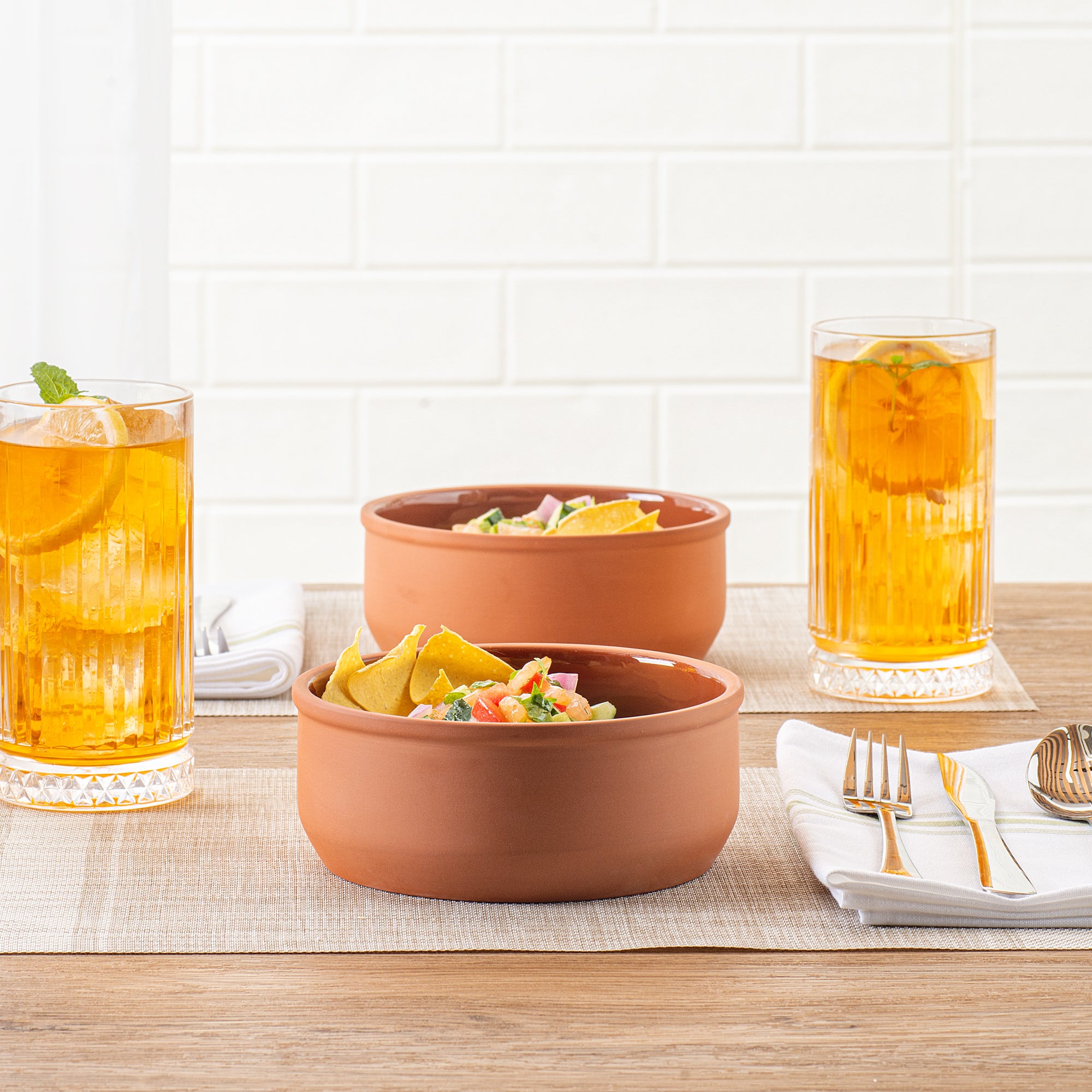 27 OZ TERRACOTTA CAZUELA BOWL - BROWN GLAZED INTERIOR, OVEN-SAFE