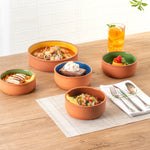 Enhance your culinary presentation with versatile terracotta bowls. The Terra Tek Glazed Interior Cazuela Bowl is designed with a 6.3-inch diameter, providing an ideal canvas for authentic tapas dishes. Featuring a brown glazed terracotta bowl finish, it offers a non-stick surface that enhances the presentation of meals and simplifies food release. Its dishwashable design saves time on cleaning, making it a practical choice for busy kitchens. With a freezer-safe construction, this tapas serving bowl allows for storing prepared dishes conveniently, ensuring efficient kitchen operations. The durable terracotta build withstands high temperatures, making it perfect for both oven and microwave use. Add a touch of tradition to your dining experience while enjoying the functional benefits of this versatile piece. Each order includes 10 Terra Tek Glazed Interior Cazuela Bowls.