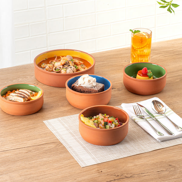 27 OZ TERRACOTTA CAZUELA BOWL - BROWN GLAZED INTERIOR, OVEN-SAFE