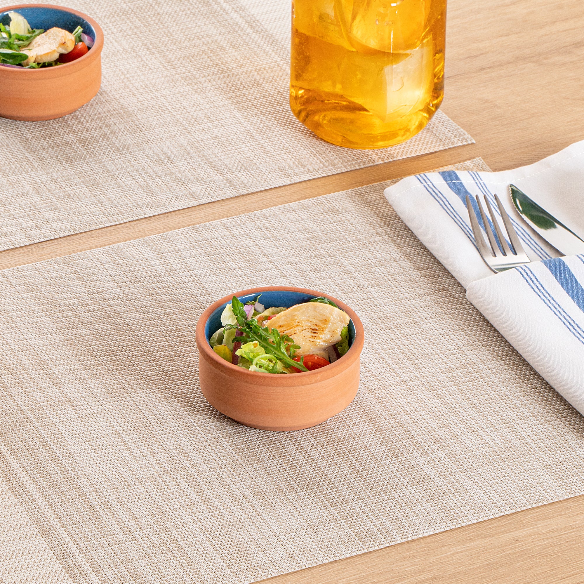3 OZ TERRACOTTA CAZUELA BOWL - BLUE GLAZED INTERIOR, OVEN-SAFE