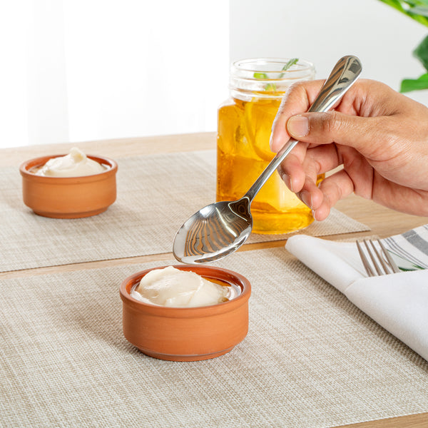 3 OZ TERRACOTTA CAZUELA BOWL - BROWN GLAZED INTERIOR, OVEN-SAFE