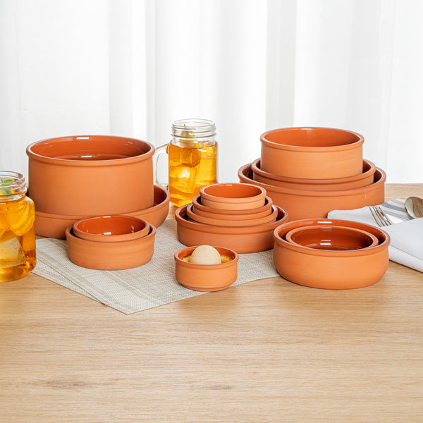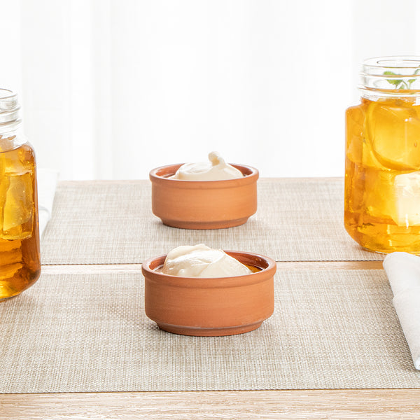 3 OZ TERRACOTTA CAZUELA BOWL - BROWN GLAZED INTERIOR, OVEN-SAFE