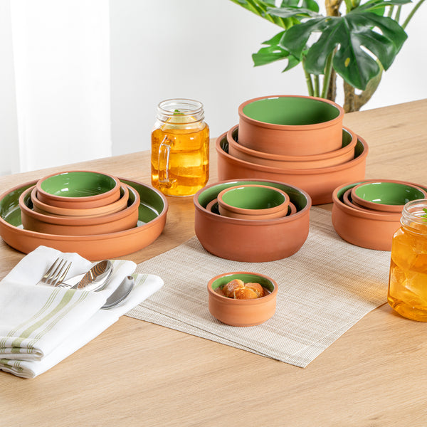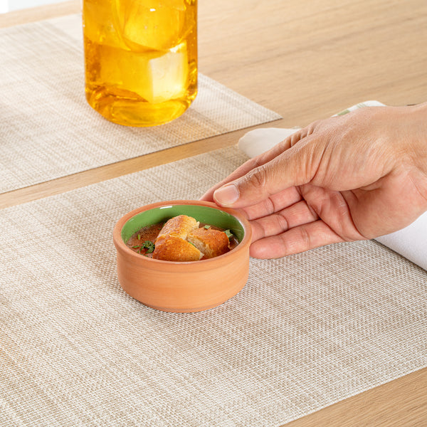 3 OZ TERRACOTTA CAZUELA BOWL - GREEN GLAZED INTERIOR, OVEN-SAFE