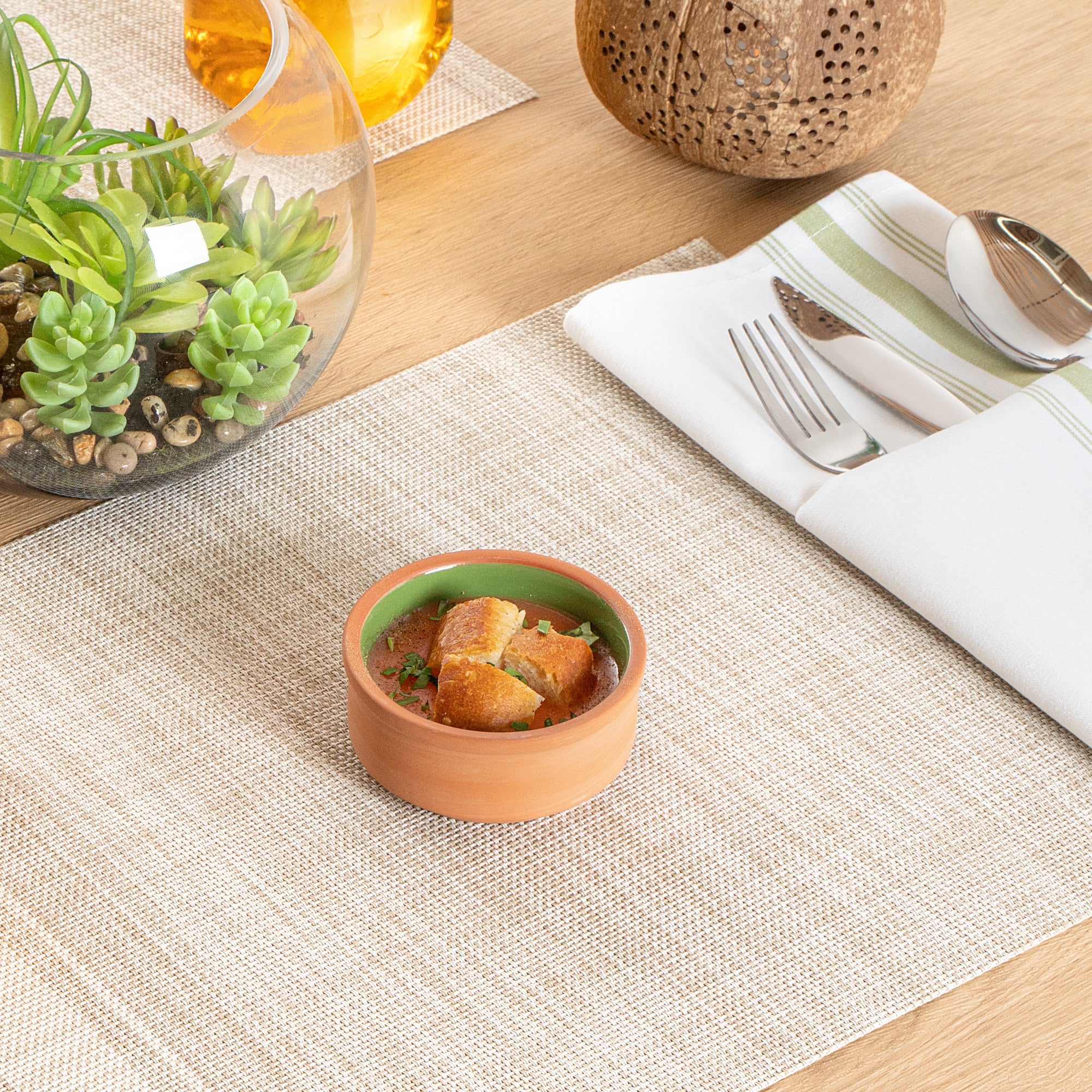 Elevate your culinary presentations with versatile oven-safe tableware. The Terra Tek Glazed Interior Terracotta Bowl combines a premium terracotta construction with a vibrant green glazed interior to enhance the visual appeal of every dish. As an exceptional oven-safe bowl, it ensures durability for both oven and microwave use, providing consistent heat retention and keeping meals warm longer. With a convenient dishwashable design, this tapas bowl simplifies post-meal cleanup, saving time and effort in busy foodservice environments. Its compact dimensions of 3.1 inches in both width and height make it ideal for individual servings, perfect for tapas in Spanish-themed restaurants or desserts in cafes. The terracotta material not only adds a rustic charm but also ensures reliable performance across various settings. Enhance your dining experiences and streamline kitchen operations with this essential piece of tableware. Each order includes 2 Terra Tek Glazed Interior Terracotta Bowls.