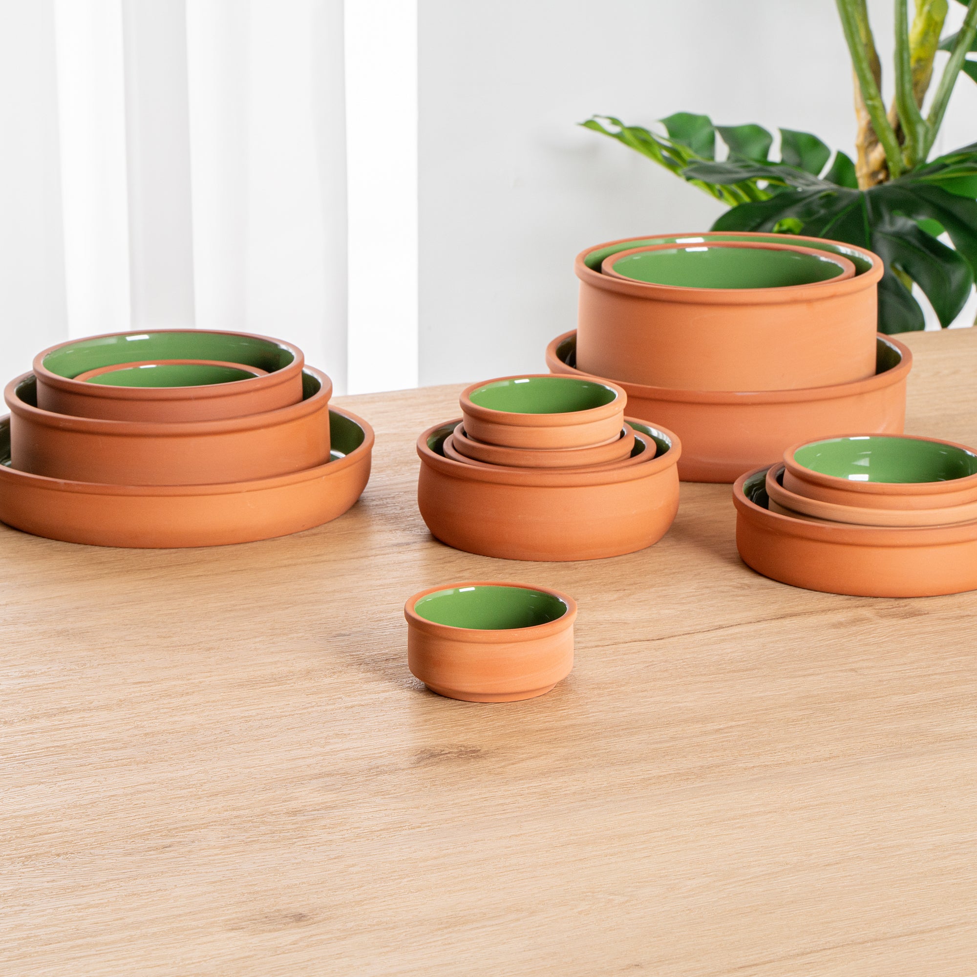 3 OZ TERRACOTTA CAZUELA BOWL - GREEN GLAZED INTERIOR, OVEN-SAFE