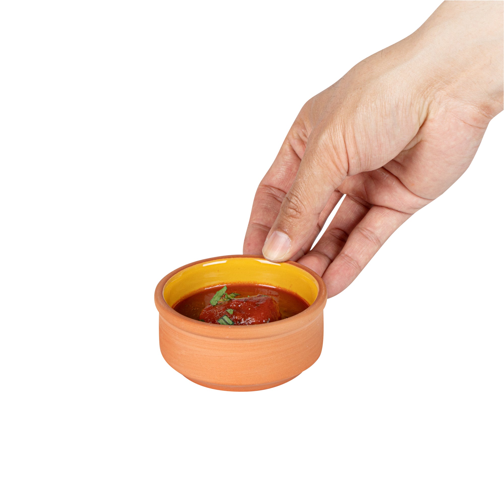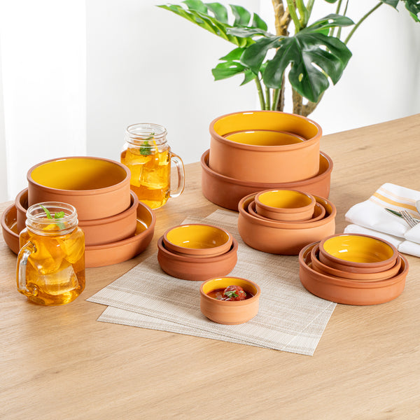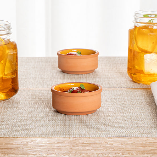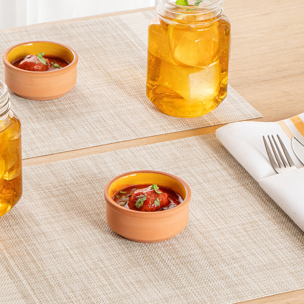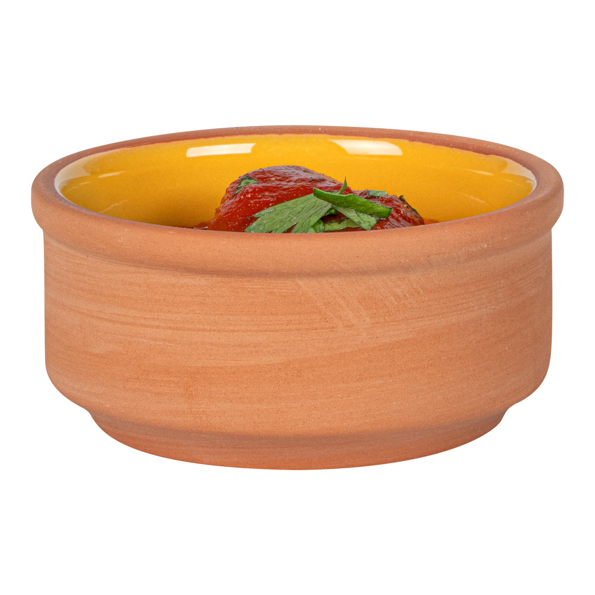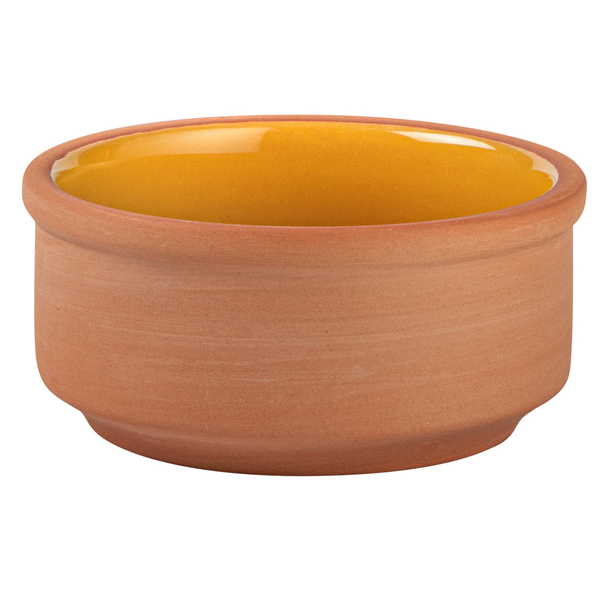 3 OZ TERRACOTTA CAZUELA BOWL - YELLOW GLAZED INTERIOR, OVEN-SAFE