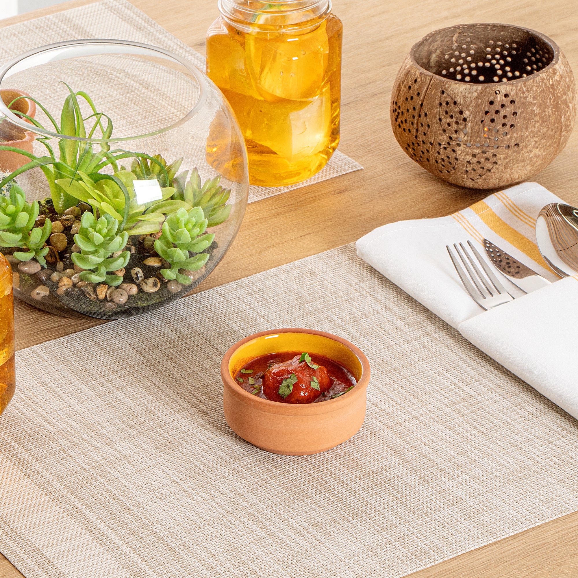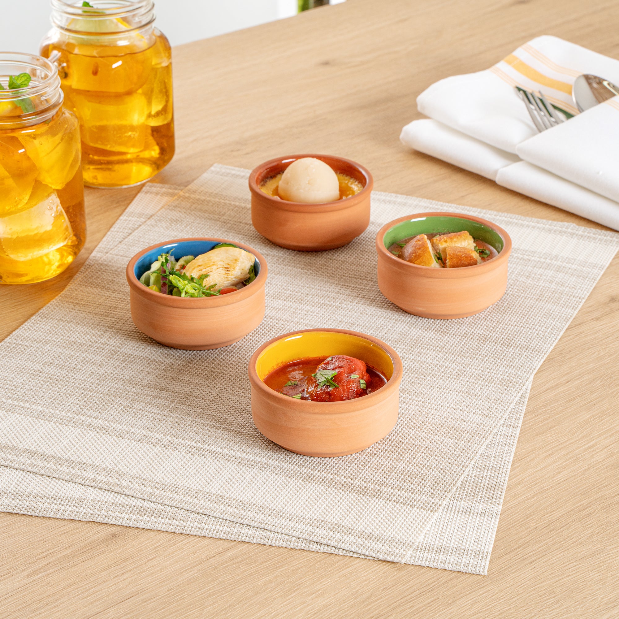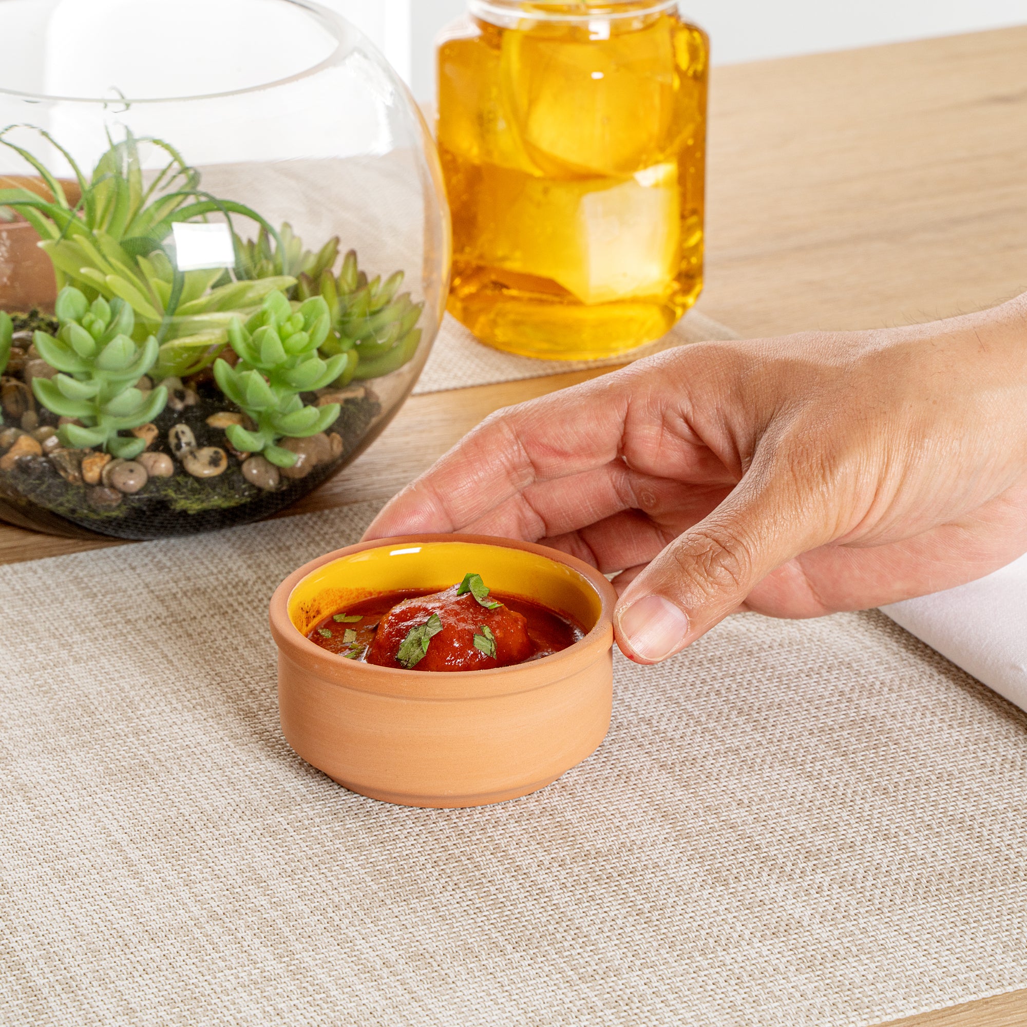 3 OZ TERRACOTTA CAZUELA BOWL - YELLOW GLAZED INTERIOR, OVEN-SAFE