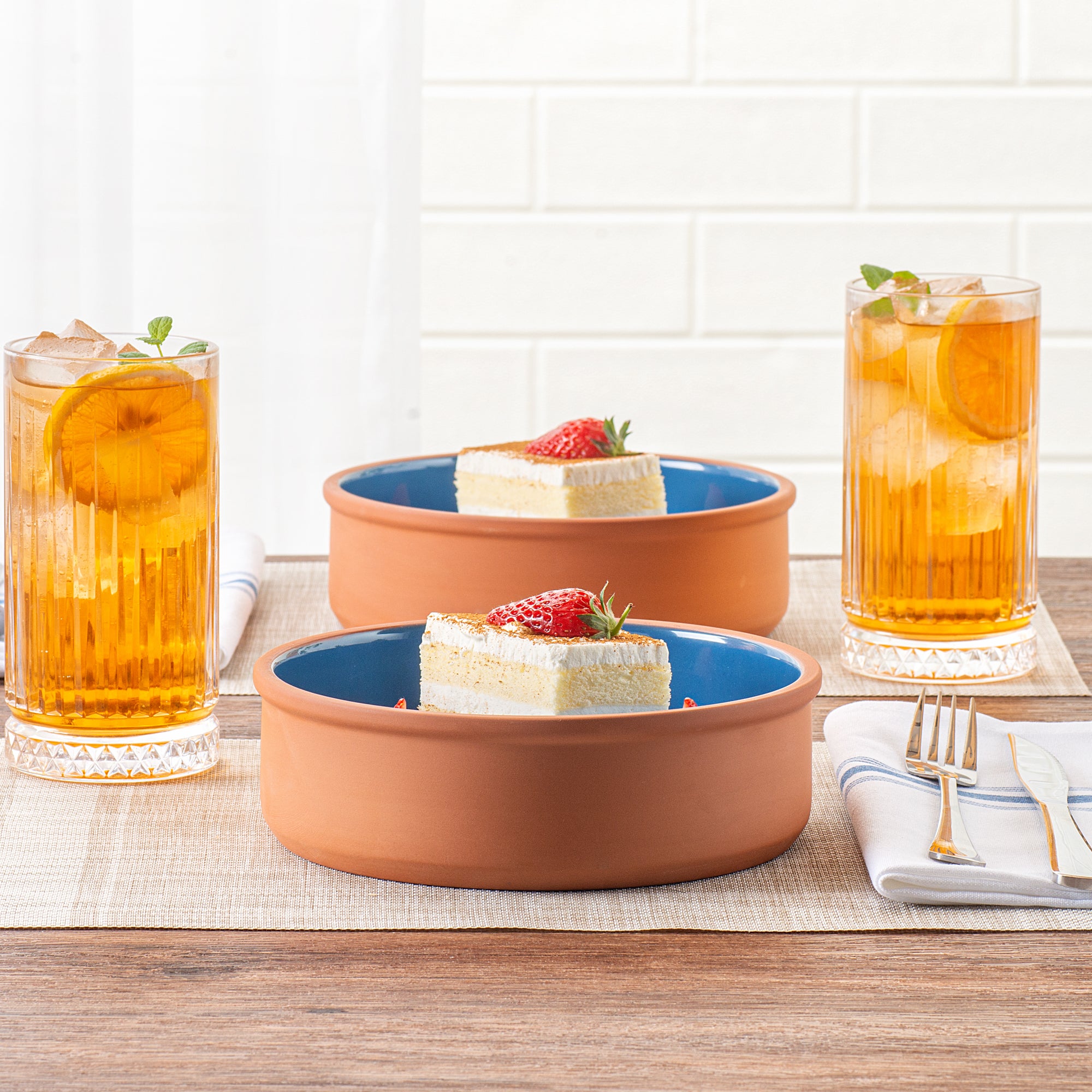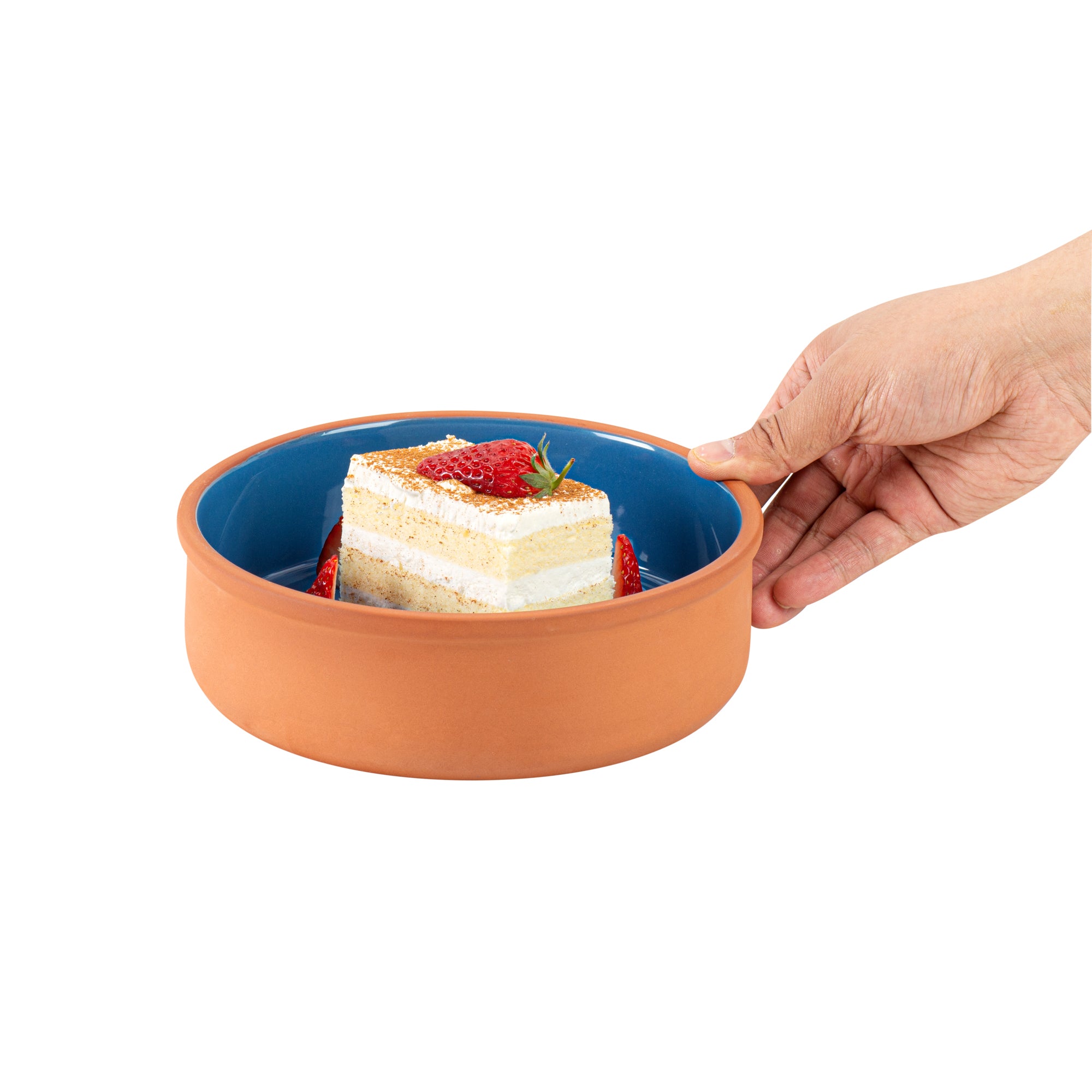 34 OZ TERRACOTTA CAZUELA BOWL - BLUE GLAZED INTERIOR, OVEN-SAFE