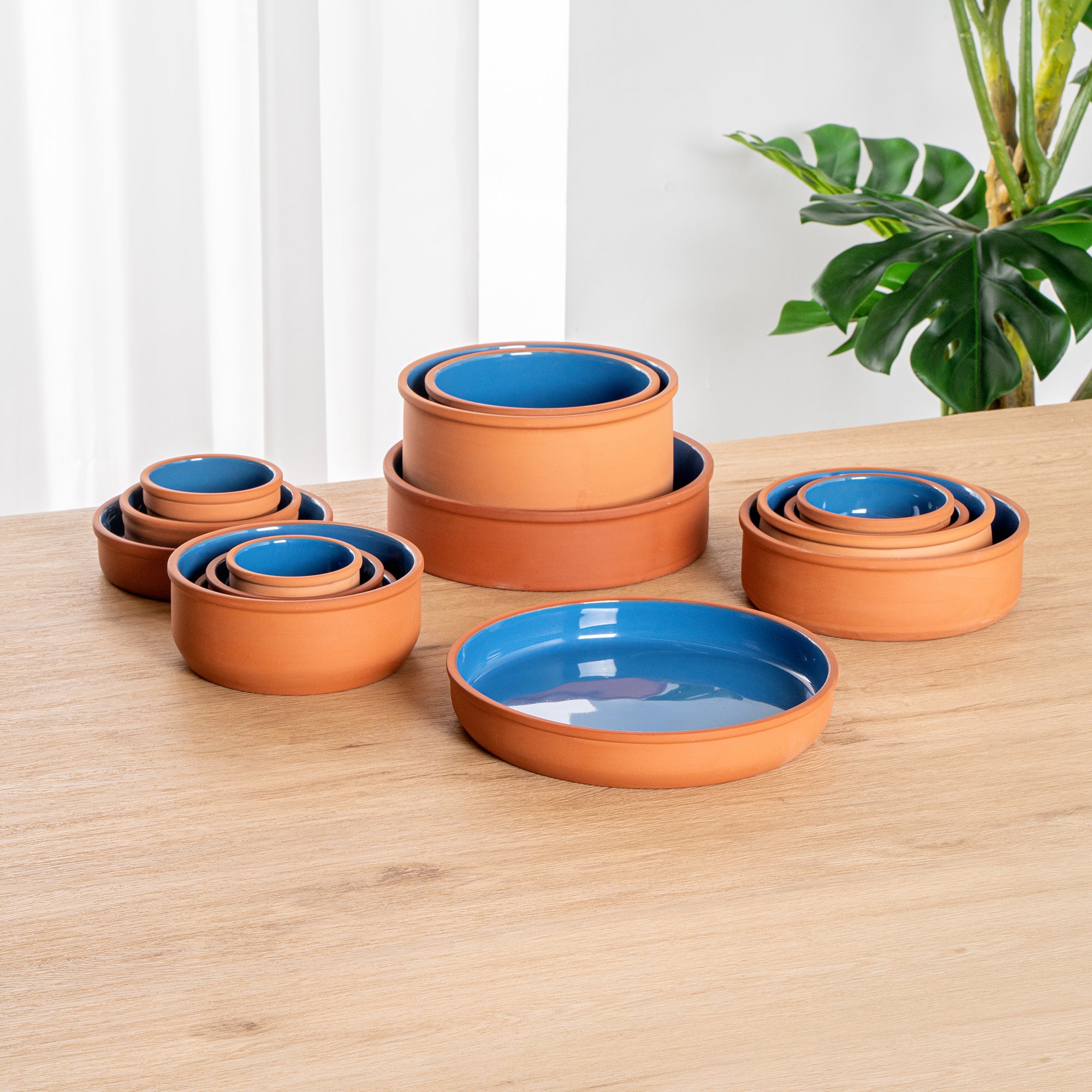 34 OZ TERRACOTTA CAZUELA BOWL - BLUE GLAZED INTERIOR, OVEN-SAFE