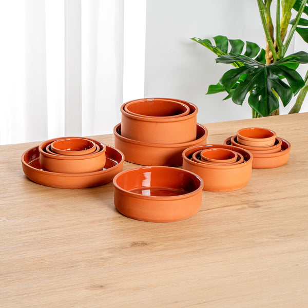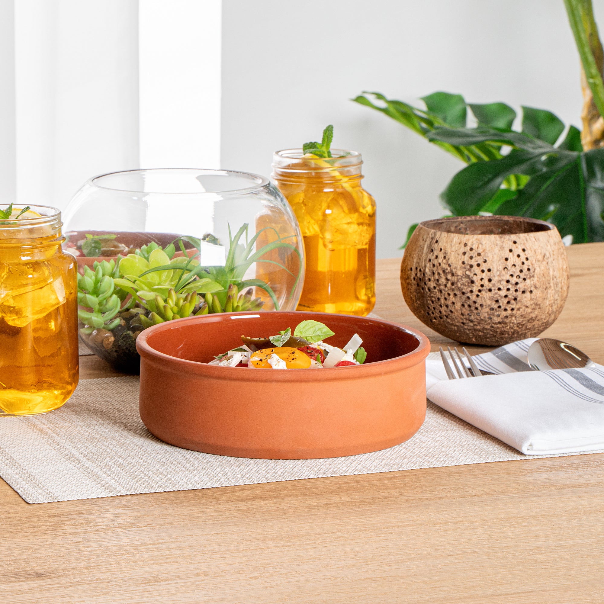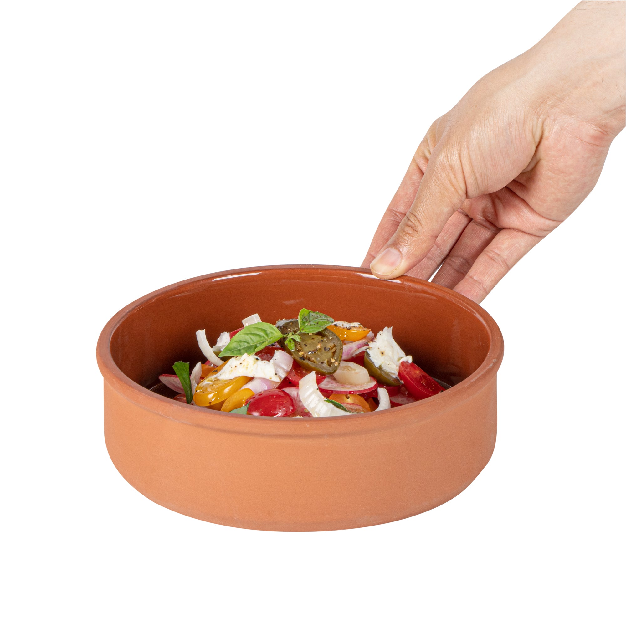 34 OZ TERRACOTTA CAZUELA BOWL - BROWN GLAZED INTERIOR, OVEN-SAFE