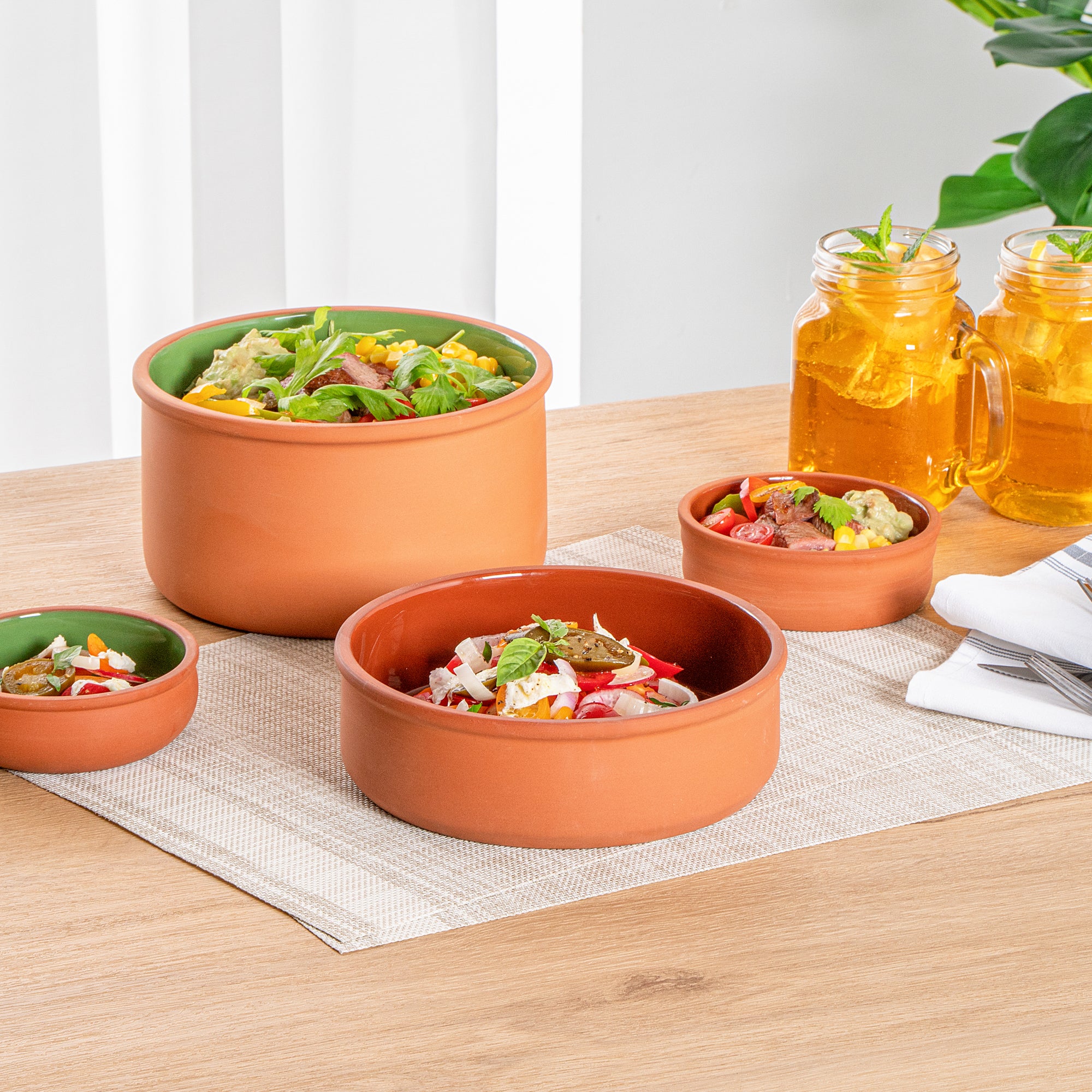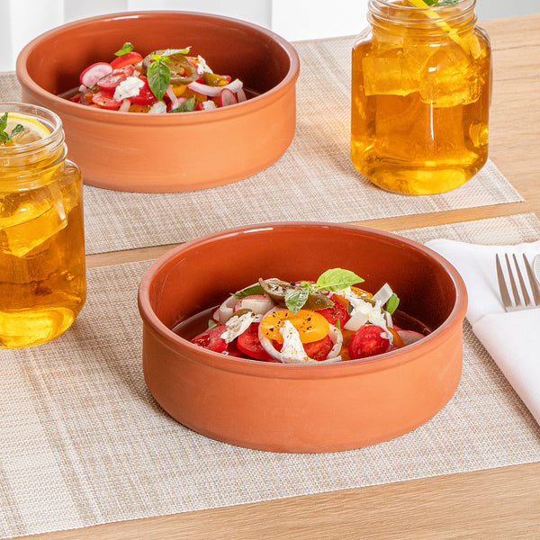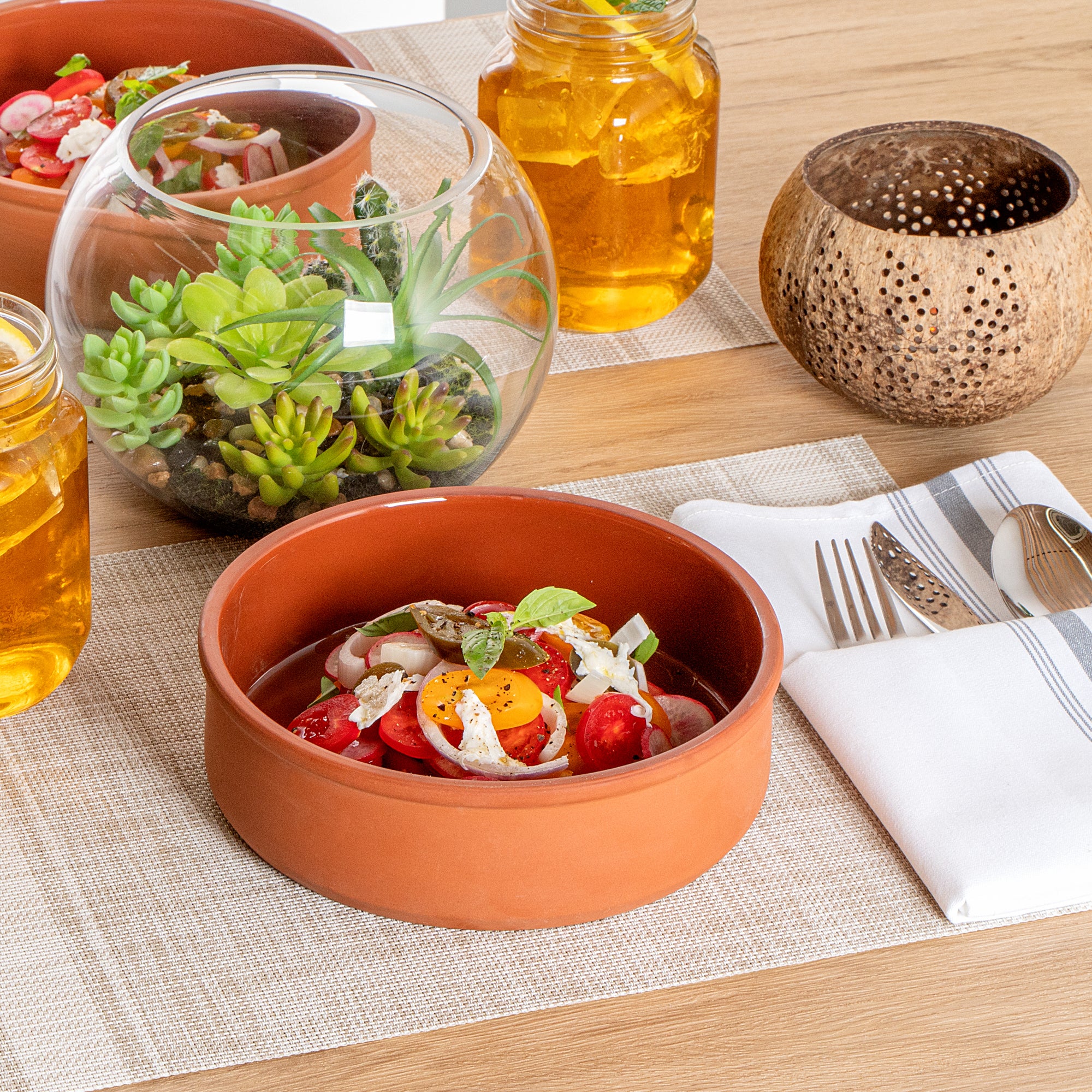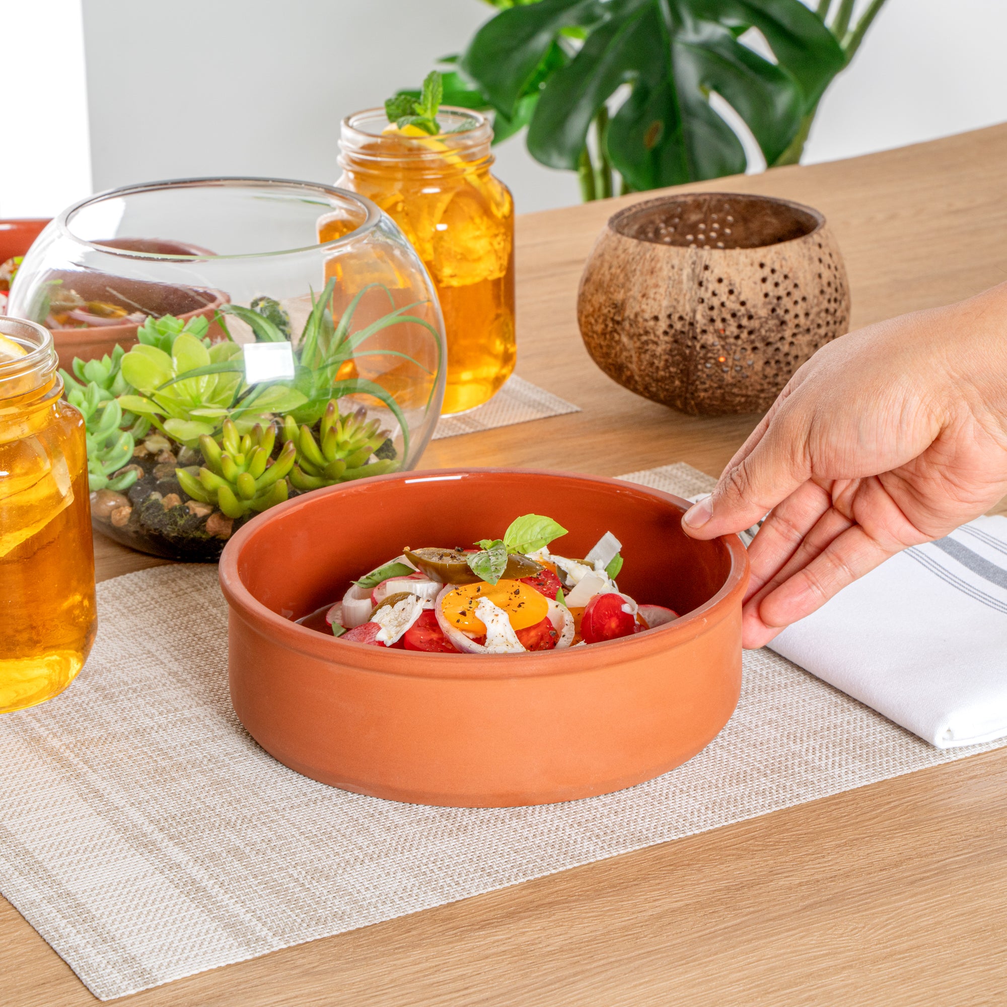 34 OZ TERRACOTTA CAZUELA BOWL - BROWN GLAZED INTERIOR, OVEN-SAFE