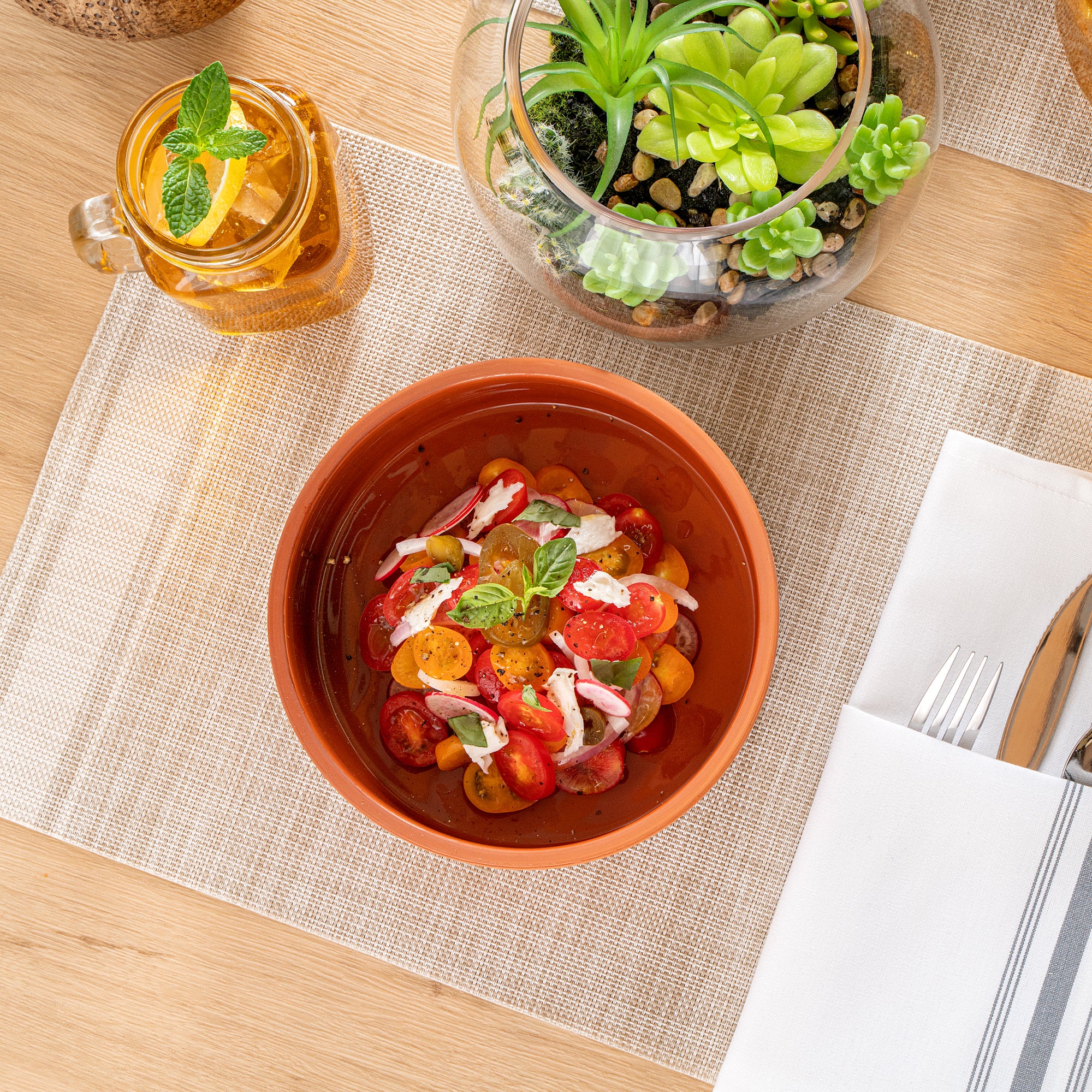 Enhance your culinary presentations with versatile serving solutions. The Terra Tek Glazed Interior Terracotta Cazuela Bowl offers a 7.5-inch diameter, perfect for presenting traditional Spanish tapas or hearty individual portions. Its brown glazed interior not only enhances the visual appeal of your dishes but also ensures easy food release and cleaning. Constructed from premium terracotta, it delivers excellent heat retention and is designed for seamless oven-to-table service, allowing chefs to present piping hot dishes directly to diners. This oven to table bowl also supports microwave use, facilitating quick reheats without the hassle of transferring food. Its dishwasher-safe design means efficient cleanup, saving valuable time and effort after service. Whether serving soups, stews, or casseroles, this terracotta cazuela bowl is the perfect choice for any foodservice establishment. Each order includes 2 Terra Tek Glazed Interior Terracotta Cazuela Bowls.