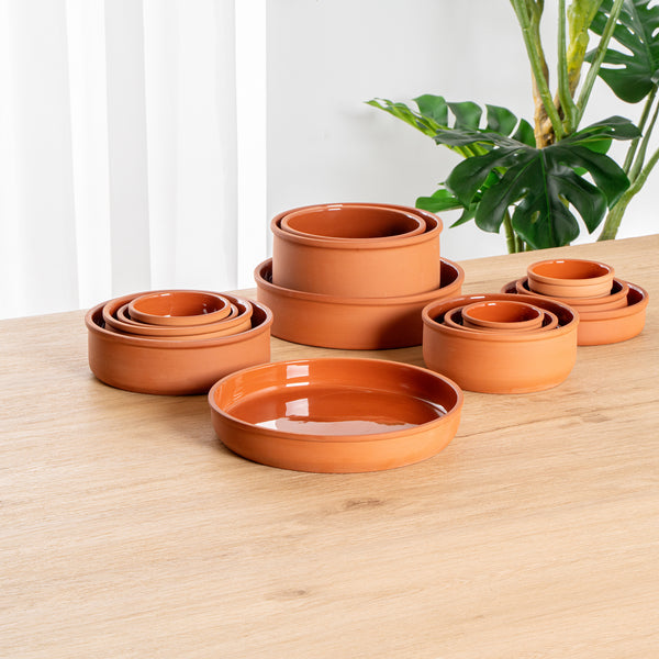 34 OZ TERRACOTTA CAZUELA BOWL - BROWN GLAZED INTERIOR, OVEN-SAFE