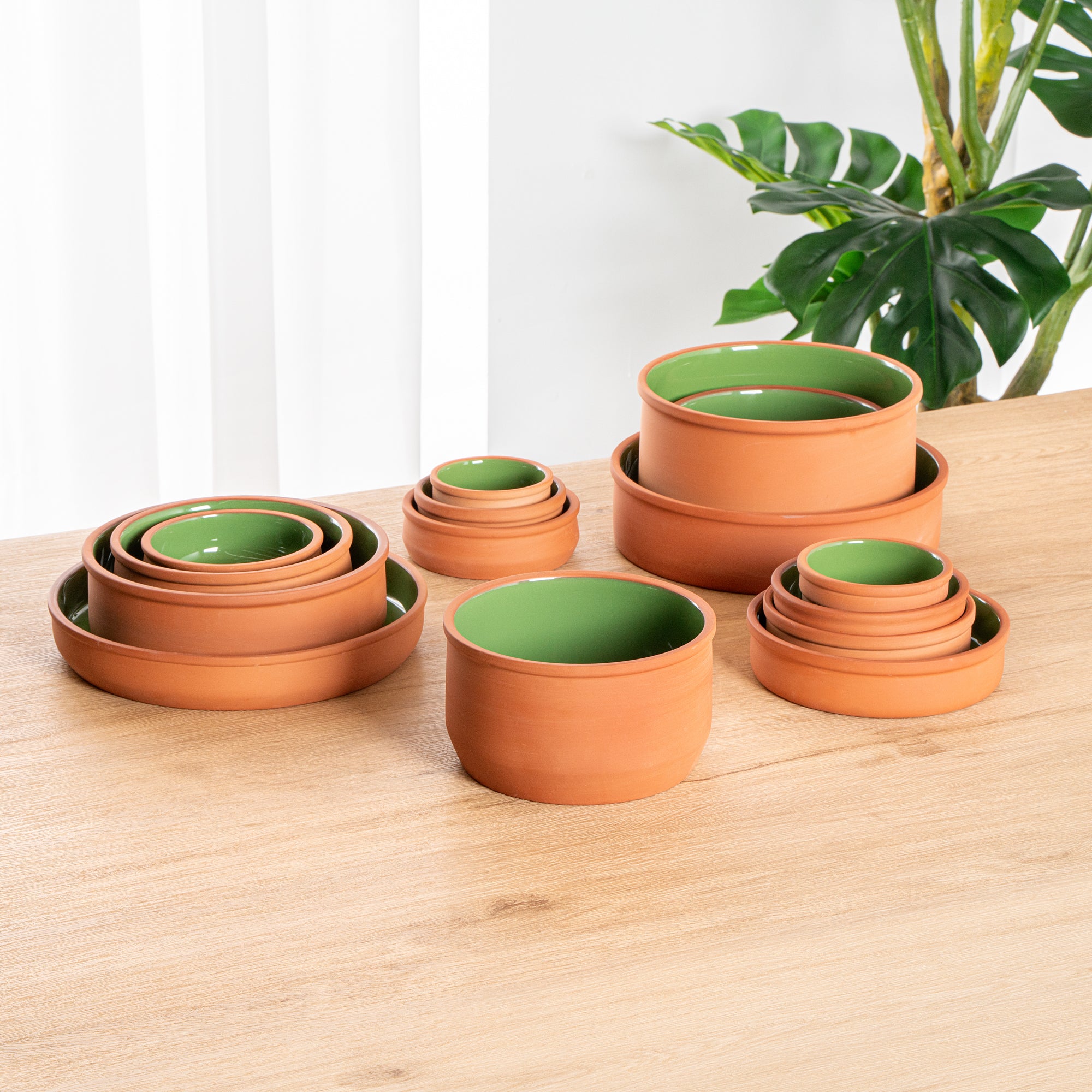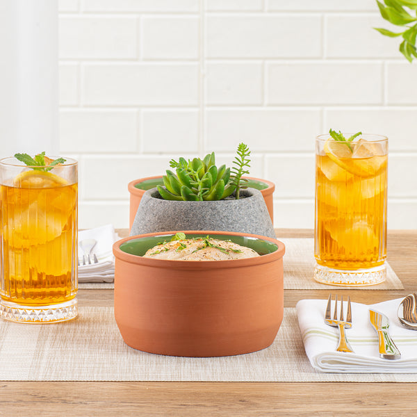 34 OZ TERRACOTTA CAZUELA BOWL - GREEN GLAZED INTERIOR, OVEN-SAFE