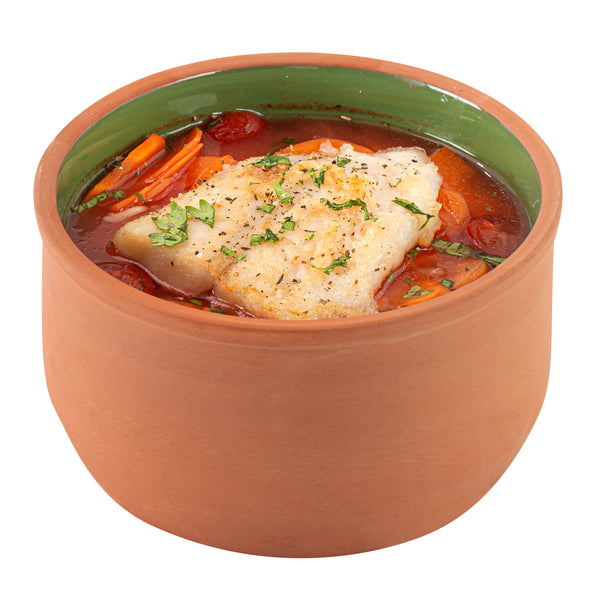 Introducing our Terra Tek 34-ounce Terracotta Cazuela Bowls, the perfect solution for versatile and stylish food presentation that will elevate your culinary creations. Crafted from durable terracotta, these recyclable cazuela bowls are designed to withstand the demands of a bustling kitchen, while their green glazed interior adds a touch of elegance to your gourmet dishes. Oven-ready and perfect for cooking, these terracotta cazuelas can be used for a variety of dishes, from appetizers to main courses. These microwave cooking bowls make it easy to reheat and serve your creations in a snap, ensuring your customers enjoy their meals at the perfect temperature. For added convenience, these reusable greaseproof glazed bowls are also freezable and dishwashable, allowing you to effortlessly store and clean them for repeated use. Boasting a generous capacity of 34 ounces and measuring 6.25 inches in diameter by 3.5 inches in height, these gourmet kitchen bowls are perfect for serving up hearty portions of your signature dishes. Sold in a 2 count box.