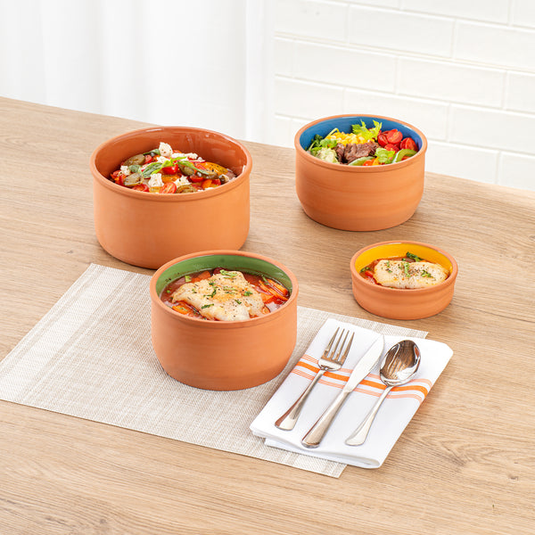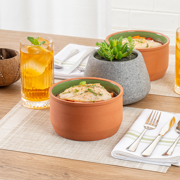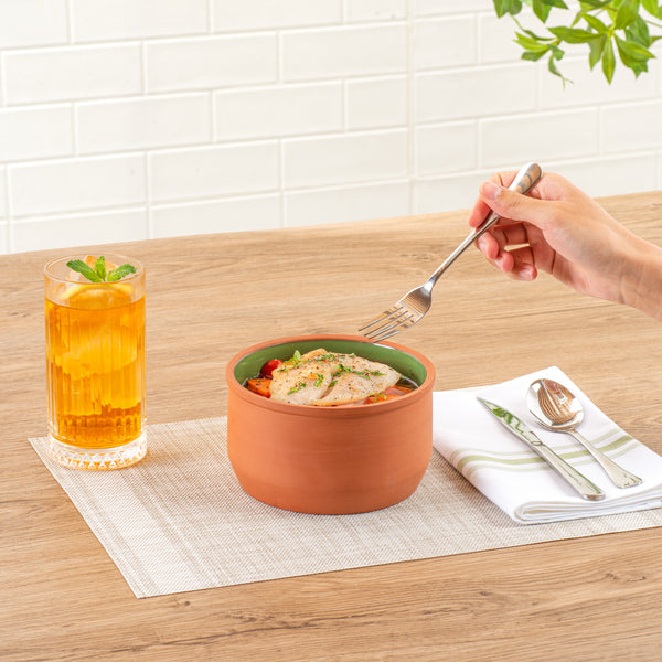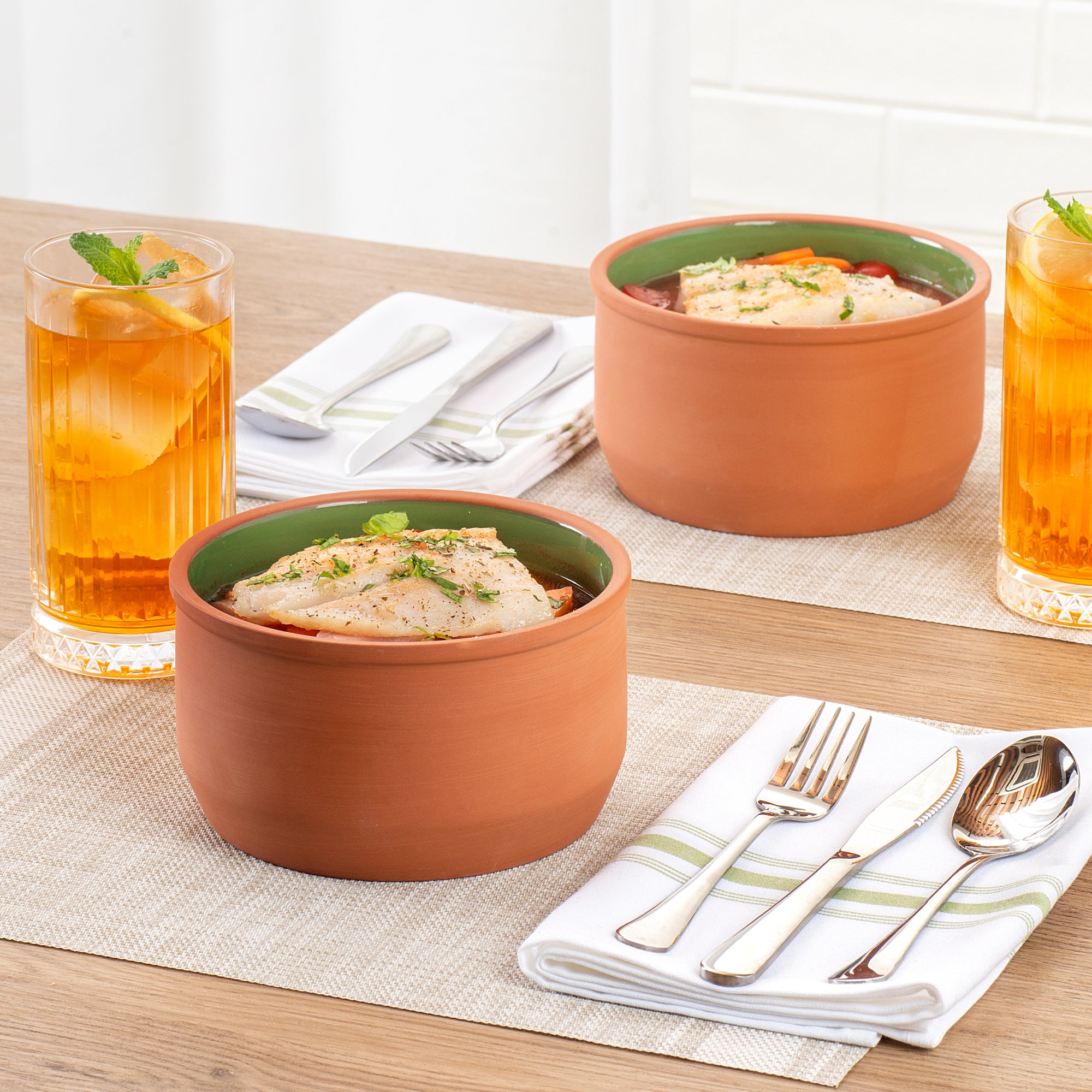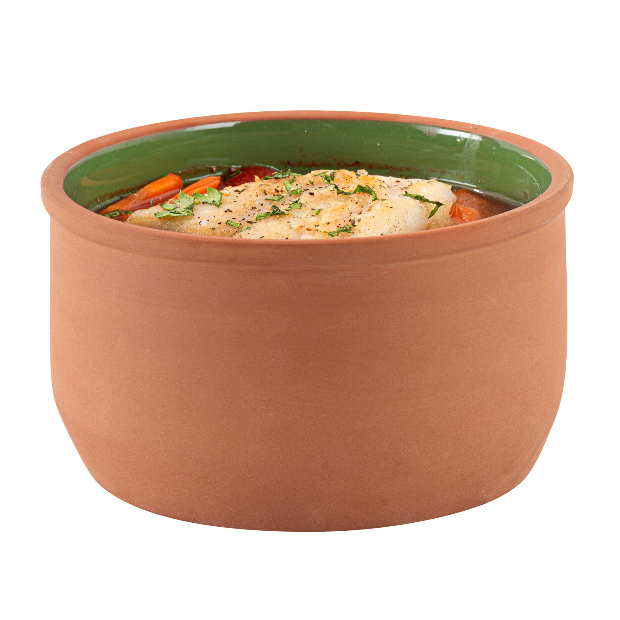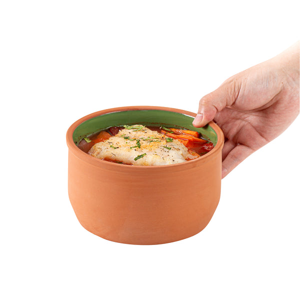 34 OZ TERRACOTTA CAZUELA BOWL - GREEN GLAZED INTERIOR, OVEN-SAFE