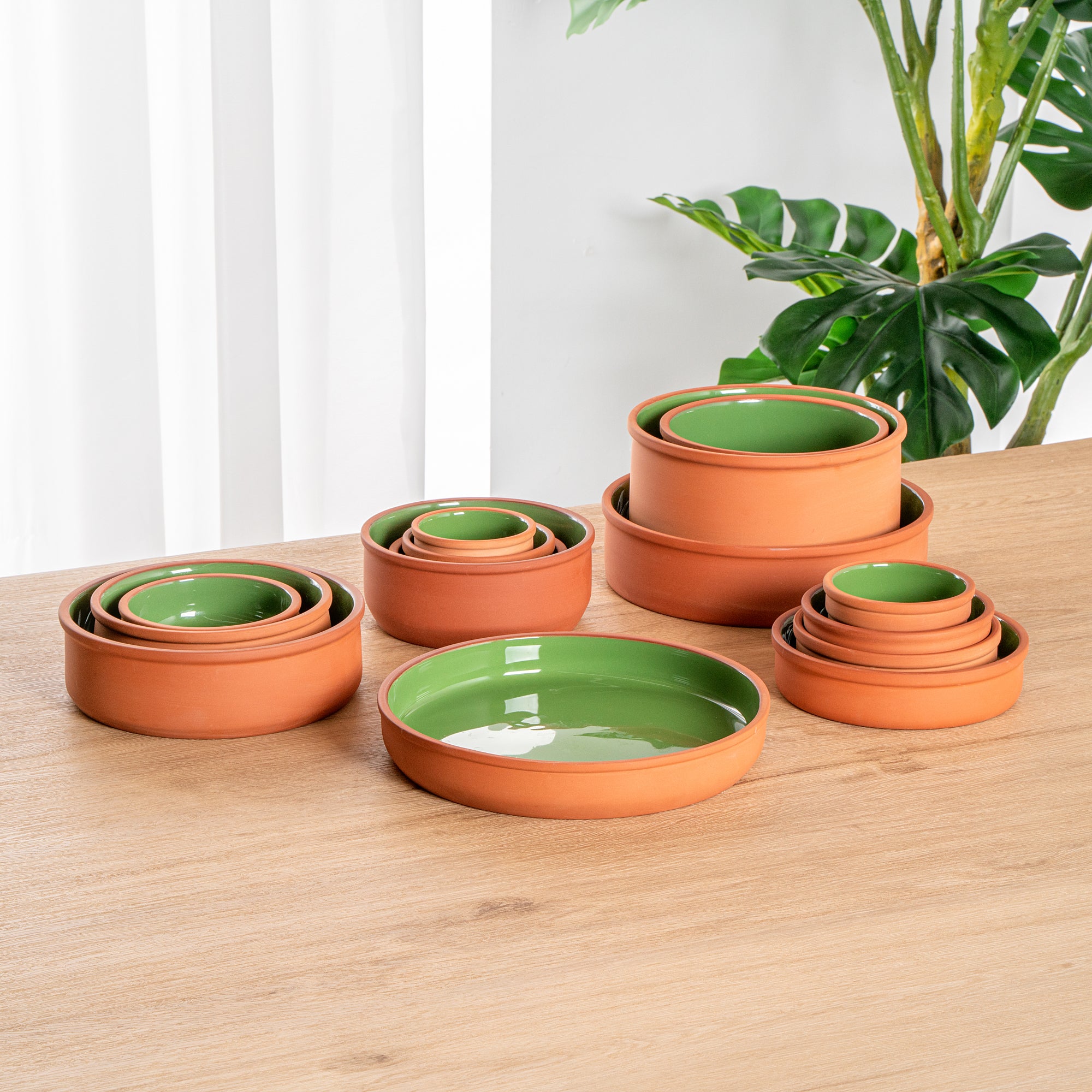 34 OZ TERRACOTTA CAZUELA BOWL - GREEN GLAZED INTERIOR, OVEN-SAFE