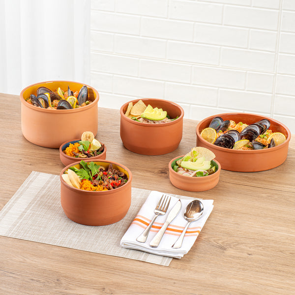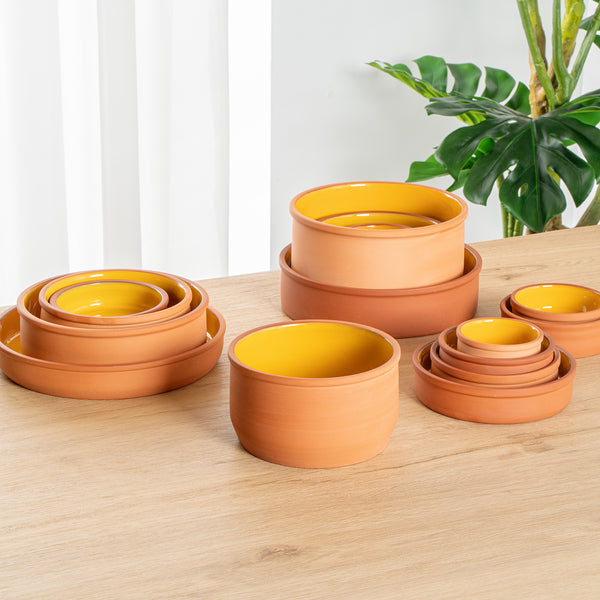 34 OZ TERRACOTTA CAZUELA BOWL - YELLOW GLAZED INTERIOR, OVEN-SAFE