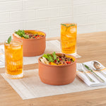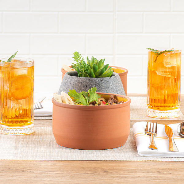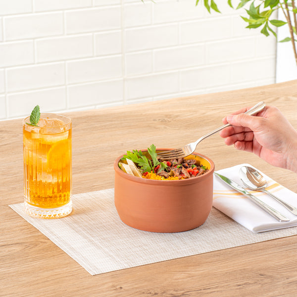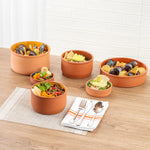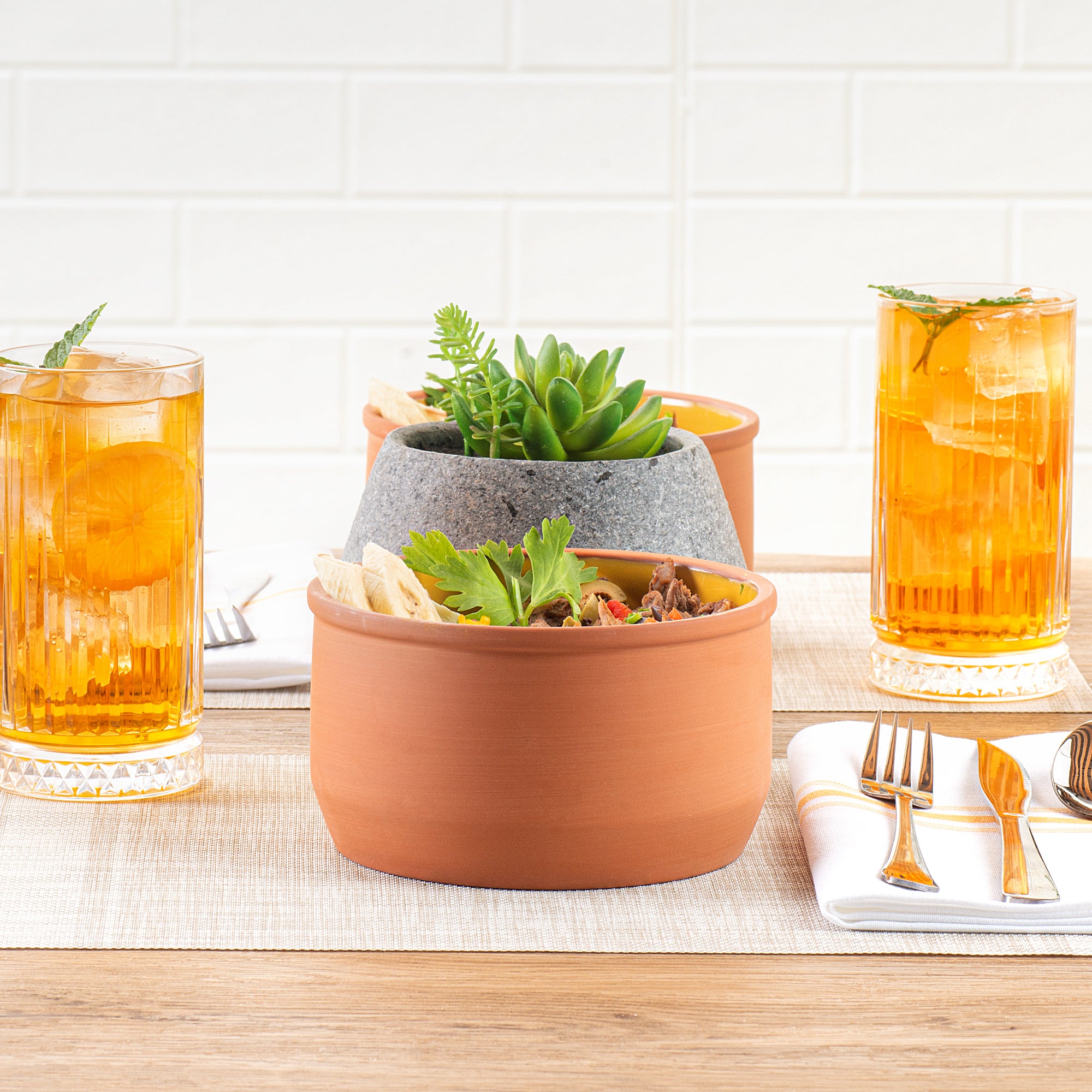 Savor the rustic charm of our Terra Tek 34-ounce Terracotta Cazuela Bowls. Handcrafted from durable terracotta, these recyclable cazuela bowls bring an earthy elegance to any table setting. With their greaseproof glazed bowls, the rich yellow interior offers a striking contrast to the exterior, enhancing the visual appeal of your dishes. Designed for versatility, these cooking bowls can go straight from the oven to the table, making food prep and serving a breeze. For those quick and easy meals, these microwave cooking bowls are a time-saver, ensuring your food is heated evenly and efficiently. Conveniently freezable, these terracotta cazuelas allow for easy food storage, preserving the freshness and flavor of your culinary creations. These gourmet kitchen bowls are dishwashable, making maintenance effortless. Holding up to 34 ounces and measuring 6.25 inches in diameter by 3.5 inches in height, these terracotta cazuela bowls are ideal for serving hearty meals. Sold in a 2 count box.