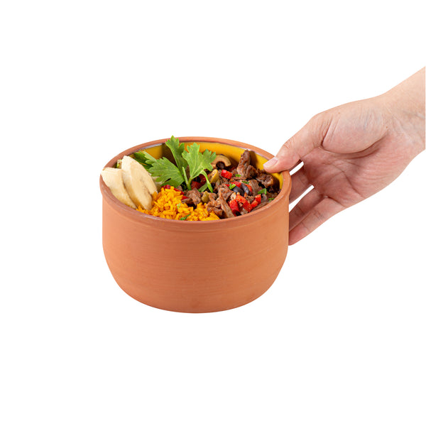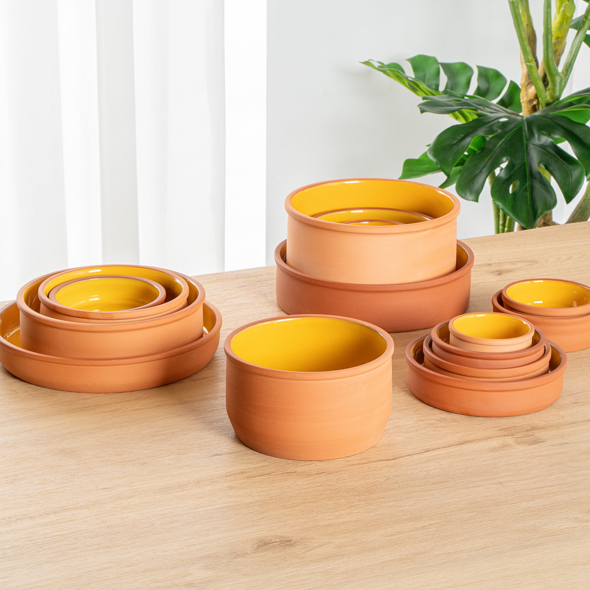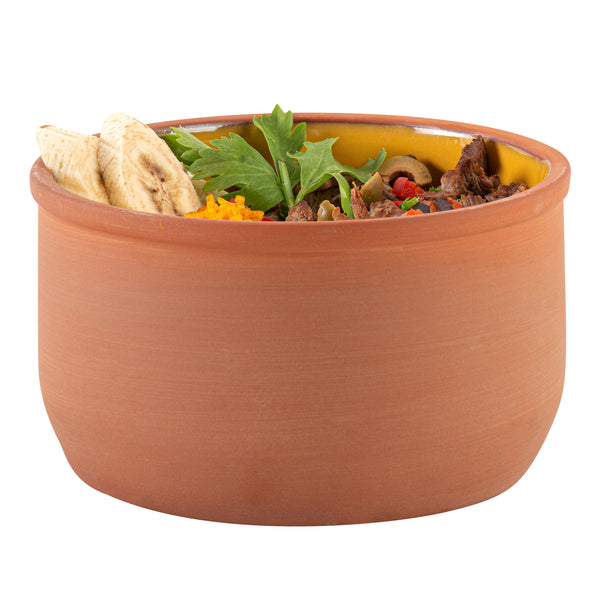 34 OZ TERRACOTTA CAZUELA BOWL - YELLOW GLAZED INTERIOR, OVEN-SAFE