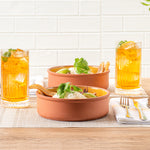 34 OZ TERRACOTTA CAZUELA BOWL - YELLOW GLAZED INTERIOR, OVEN-SAFE