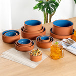 5 OZ TERRCOTTA CAZUELA BOWL - BLUE GLAZED INTERIOR, OVEN-SAFE