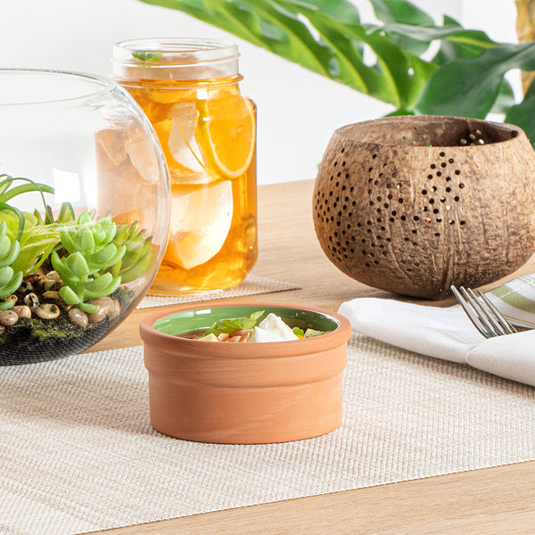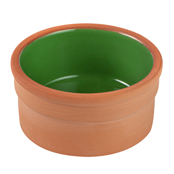 5 OZ TERRCOTTA CAZUELA BOWL - GREEN GLAZED INTERIOR, OVEN-SAFE