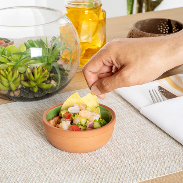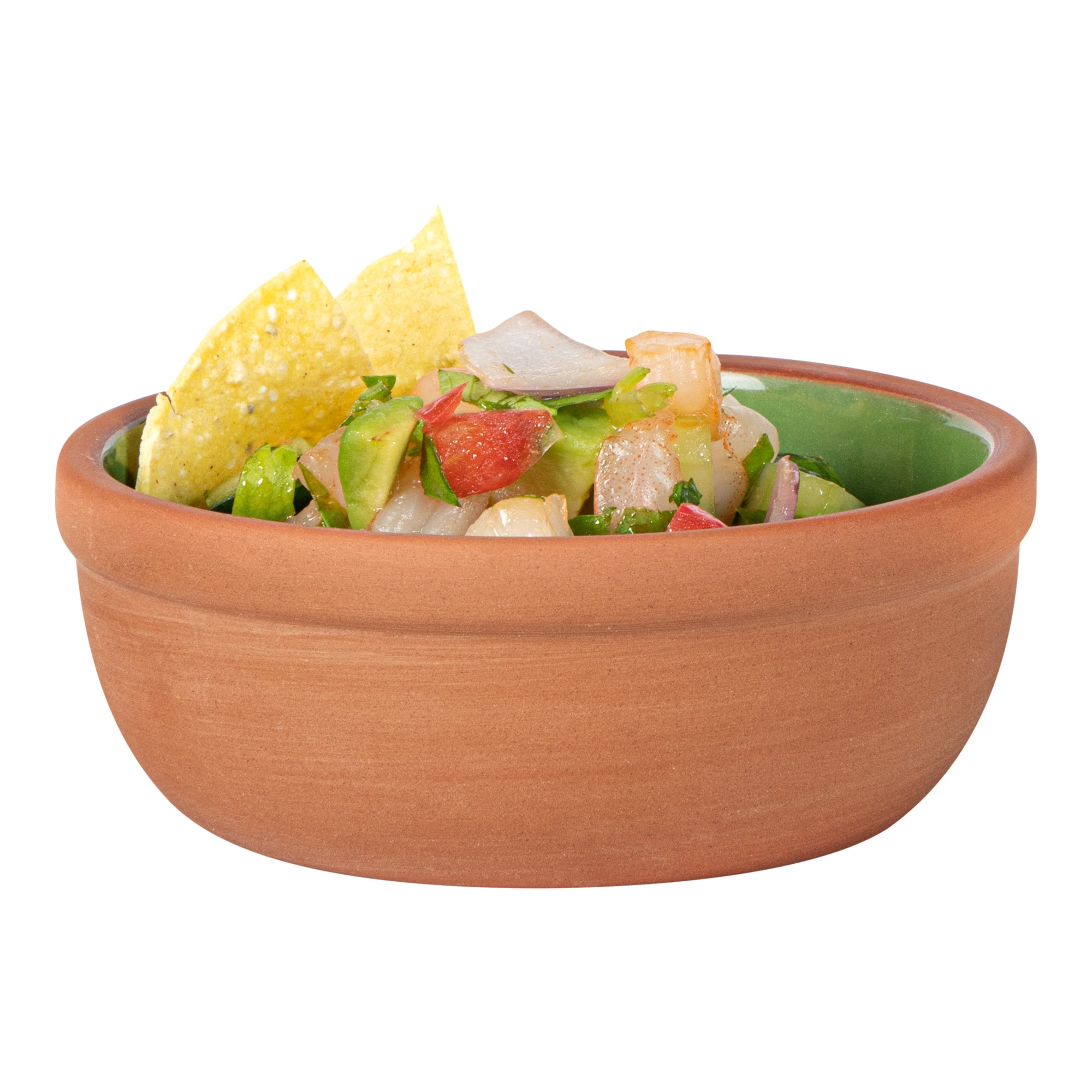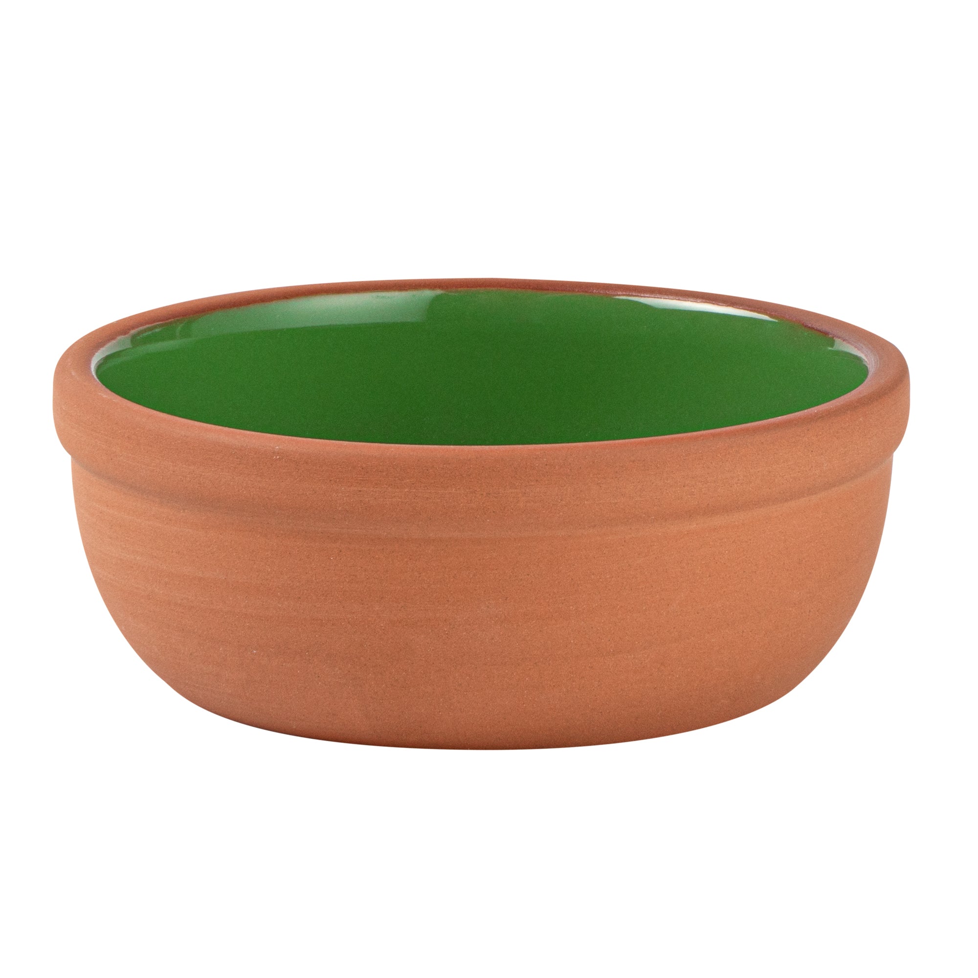5 OZ TERRCOTTA CAZUELA BOWL - GREEN GLAZED INTERIOR, OVEN-SAFE