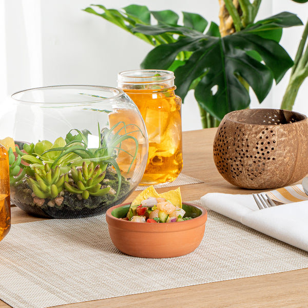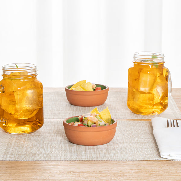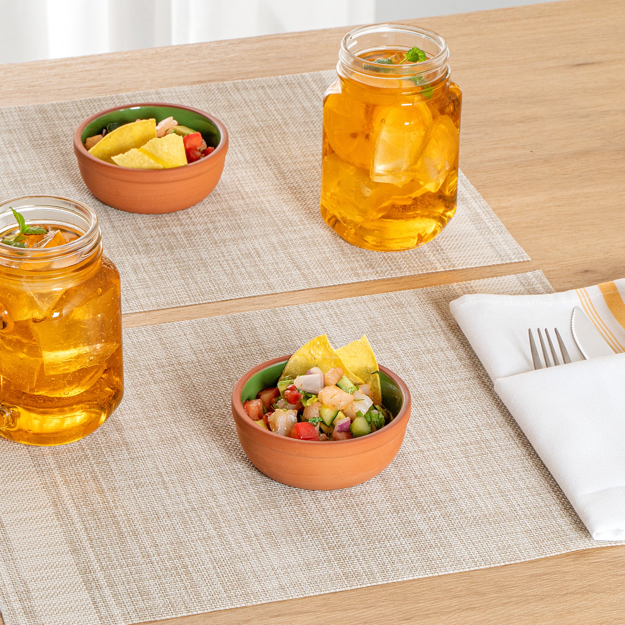 Experience the Mediterranean charm with our Terra Tek 5-ounce Terracotta Cazuela Bowls. These cazuela bowls, crafted from durable terracotta, offer a rustic yet timeless appeal that enhances your food presentation. The striking green glazed interior not only adds a pop of color but also makes these cooking bowls visually stunning. Ideal for a variety of dishes, these microwave cooking bowls can go straight from the oven to the table, offering true convenience. To ease your worries about cleaning, these greaseproof glazed bowls are dishwashable, ensuring effortless cleanup. For those who love meal prepping, these terracotta cazuelas are freezable, preserving your food's freshness until you're prepared to serve. With a generous capacity of 5 ounces and measuring 4 inches in diameter by 1.5 inches in height, these reusable glazed recyclable cazuela bowls are perfect for serving tapas or individual portions, allowing for easy storage. Sold in a 10 count box.
