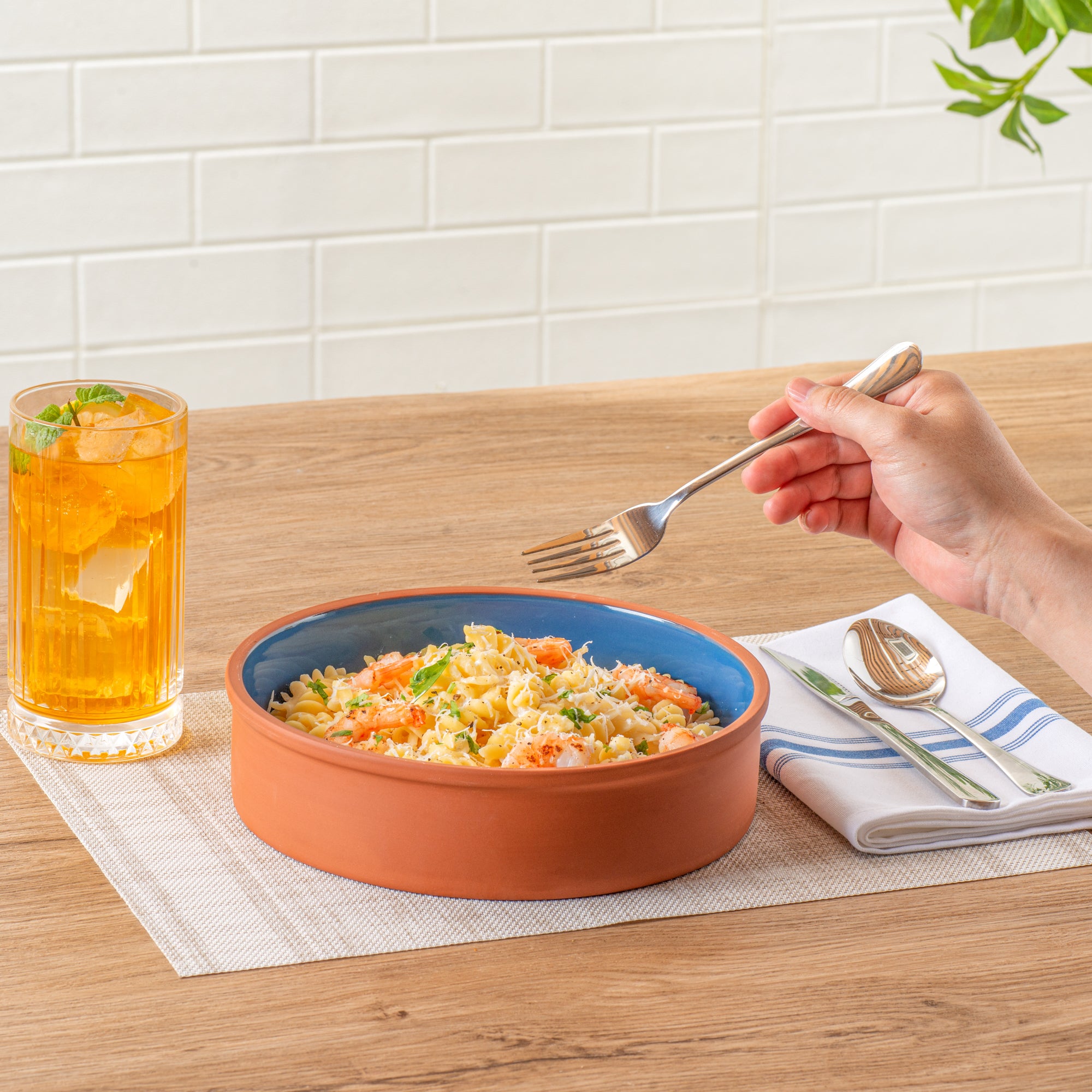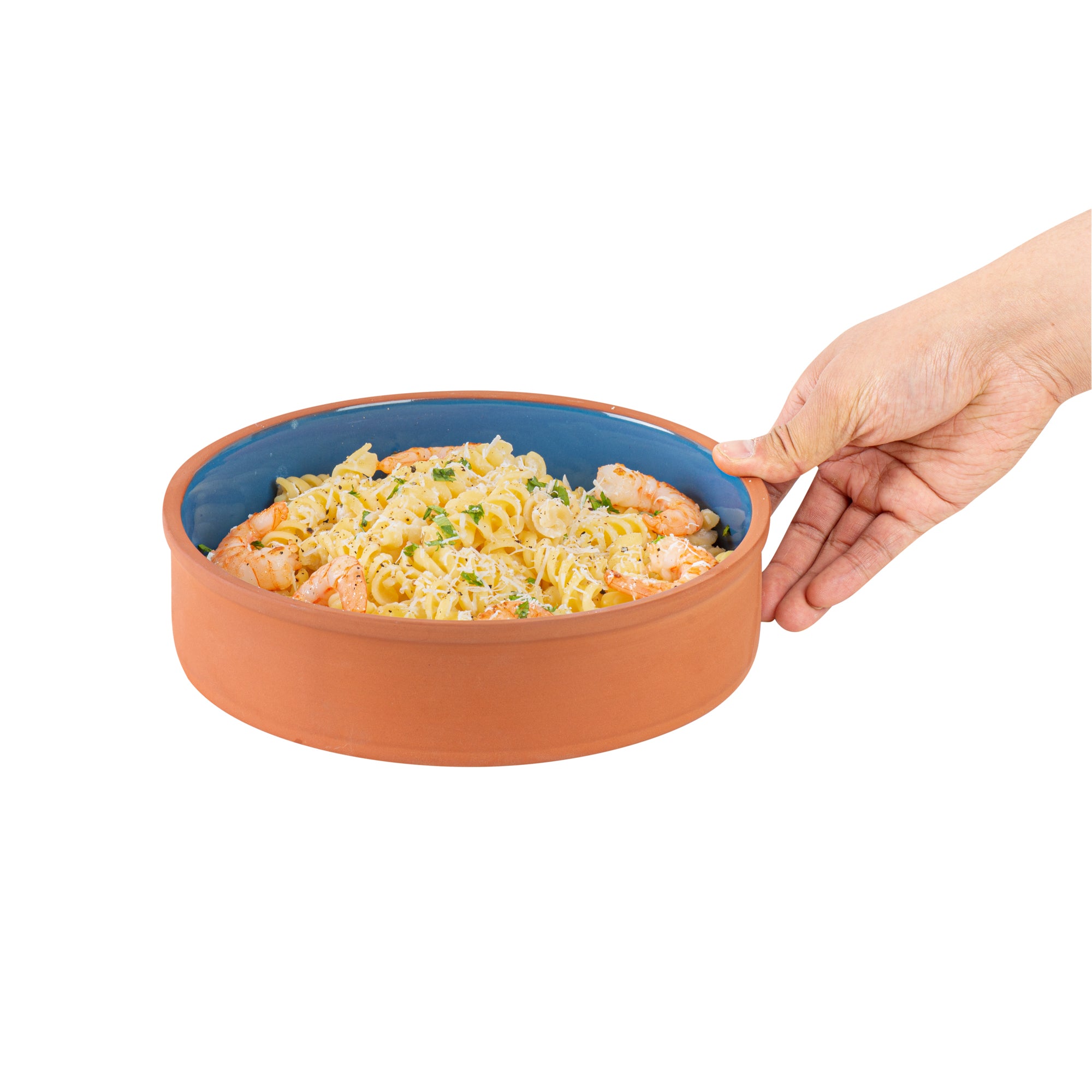 51 OZ TERRACOTTA CAZUELA BOWL - BLUE GLAZED INTERIOR, OVEN-SAFE