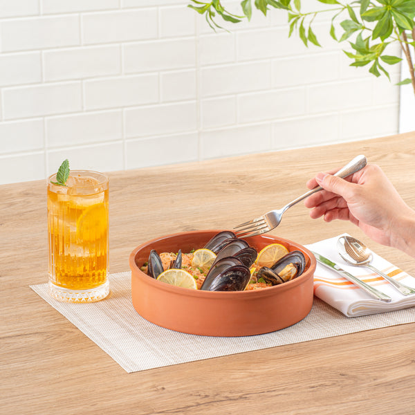 51 OZ TERRACOTTA CAZUELA BOWL - BROWN GLAZED INTERIOR, OVEN-SAFE
