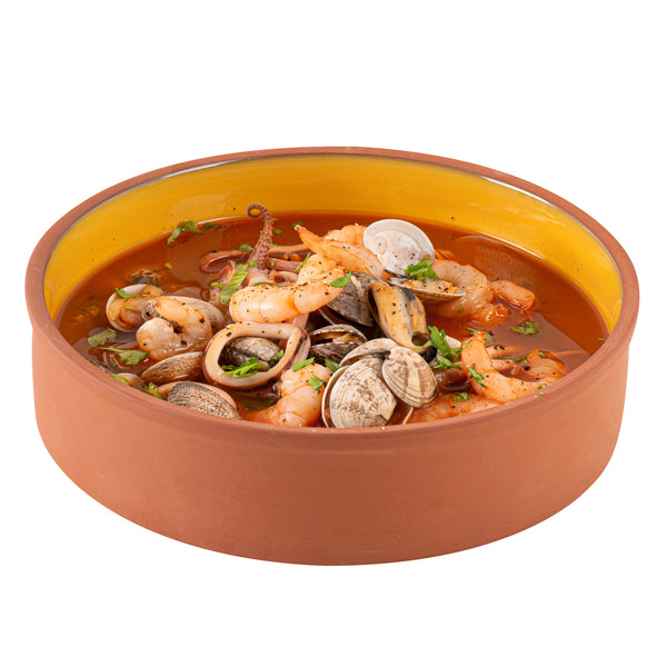 Upgrade your culinary creations with our Terra Tek 51-ounce Terracotta Cazuela Bowls. Expertly crafted from durable terracotta, these recyclable cazuela bowls are designed to withstand high temperatures and can be used in the oven for various types of recipes. Showcasing a stunning yellow glazed interior, these terracotta bowls are add an elegant touch to your food presentation. To easily cook and serve your signature dishes in style, these greaseproof glazed bowls are oven-ready, allowing for convenient and efficient meal preparation. These oven-ready cooking bowls can also be stored in the freezer and are dishwashable for easy cleaning. Containing up to 51 ounces and measuring 9 inches in diameter by 2.25 inches in height, these terracotta cazuelas are perfect for serving large portions. Sold in a 10 count box.