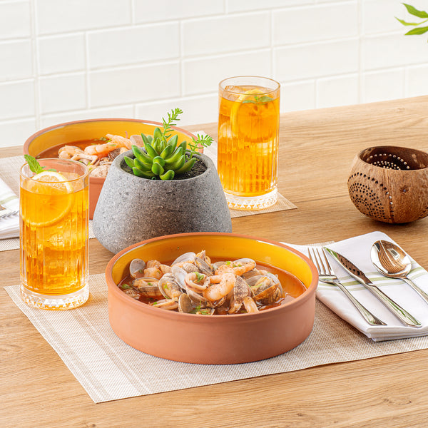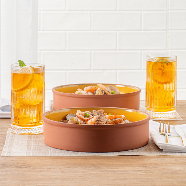 51 OZ TERRACOTTA CAZUELA BOWL - YELLOW GLAZED INTERIOR, OVEN-SAFE