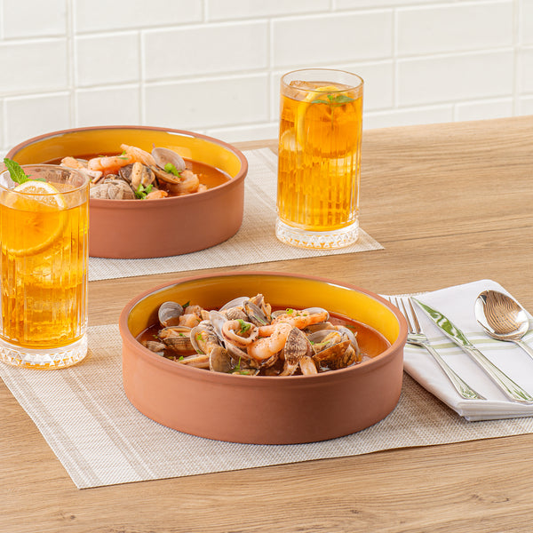 51 OZ TERRACOTTA CAZUELA BOWL - YELLOW GLAZED INTERIOR, OVEN-SAFE