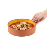 Upgrade your culinary creations with our Terra Tek 51-ounce Terracotta Cazuela Bowls. Expertly crafted from durable terracotta, these recyclable cazuela bowls are designed to withstand high temperatures and can be used in the oven for various types of recipes. Showcasing a stunning yellow glazed interior, these terracotta bowls are add an elegant touch to your food presentation. To easily cook and serve your signature dishes in style, these greaseproof glazed bowls are oven-ready, allowing for convenient and efficient meal preparation. These oven-ready cooking bowls can also be stored in the freezer and are dishwashable for easy cleaning. Containing up to 51 ounces and measuring 9 inches in diameter by 2.25 inches in height, these terracotta cazuelas are perfect for serving large portions. Sold in a 2 count box.