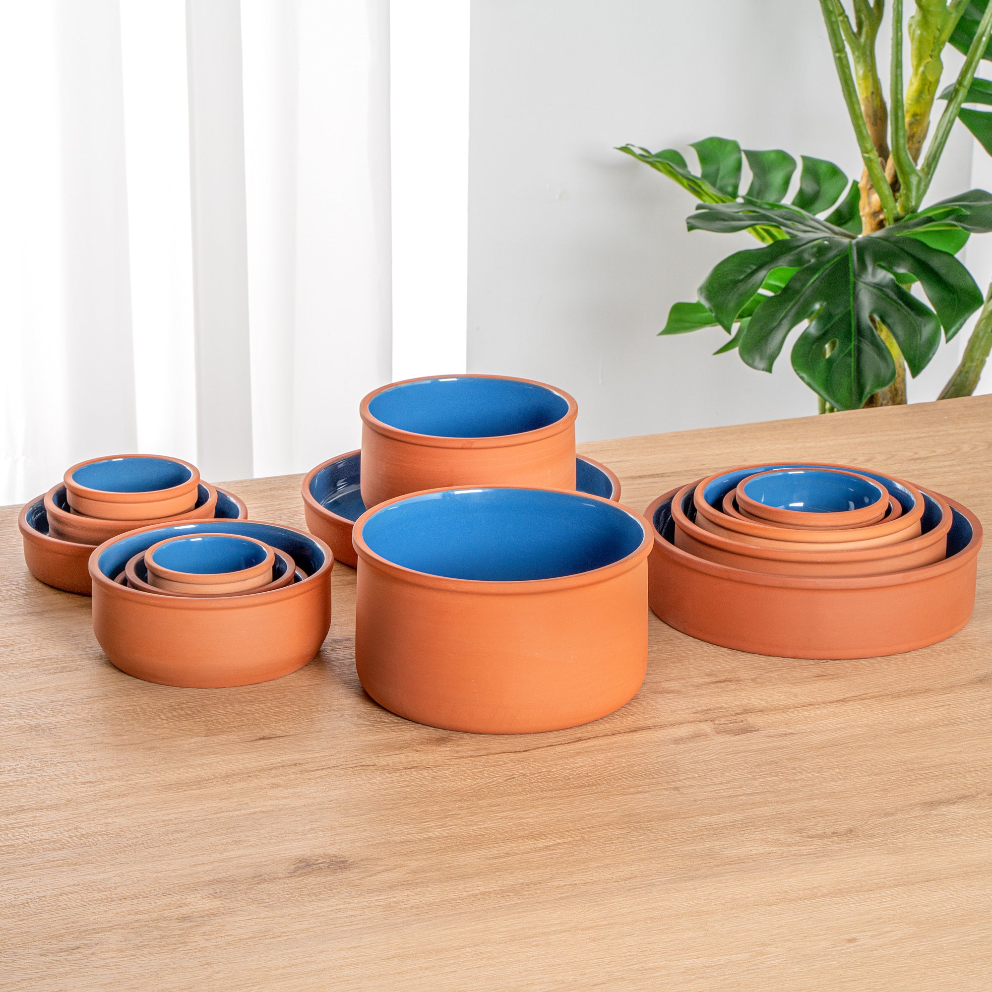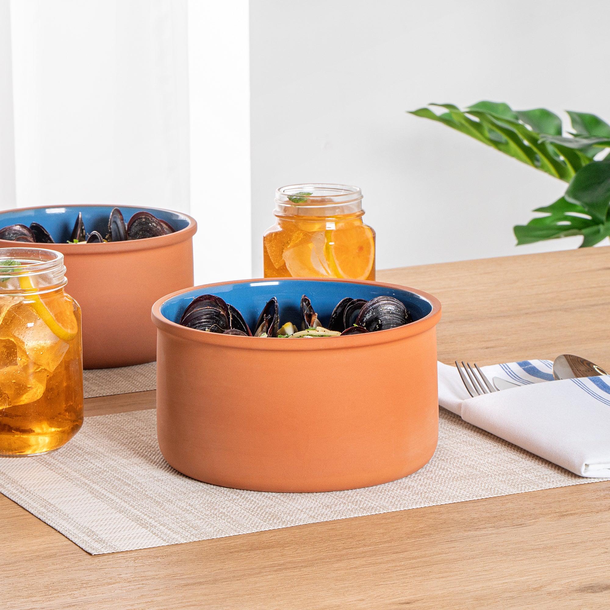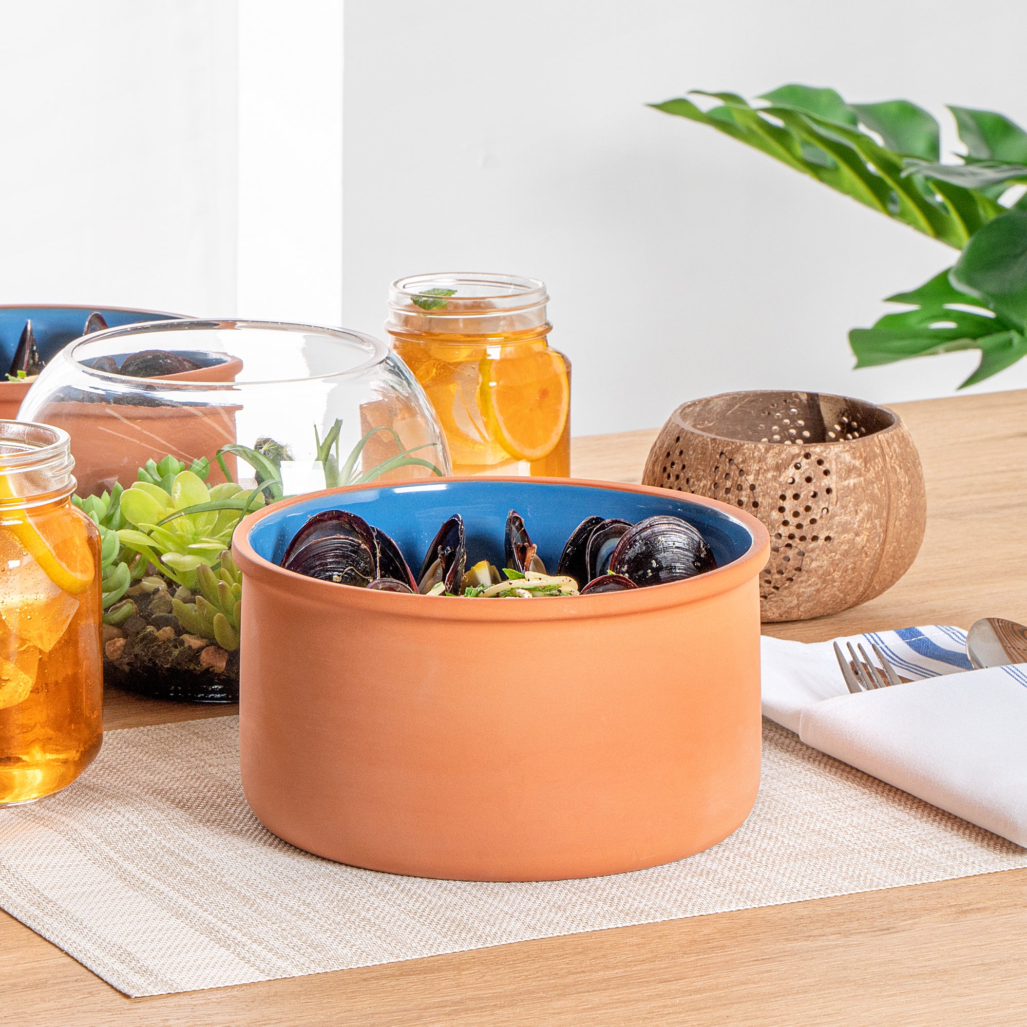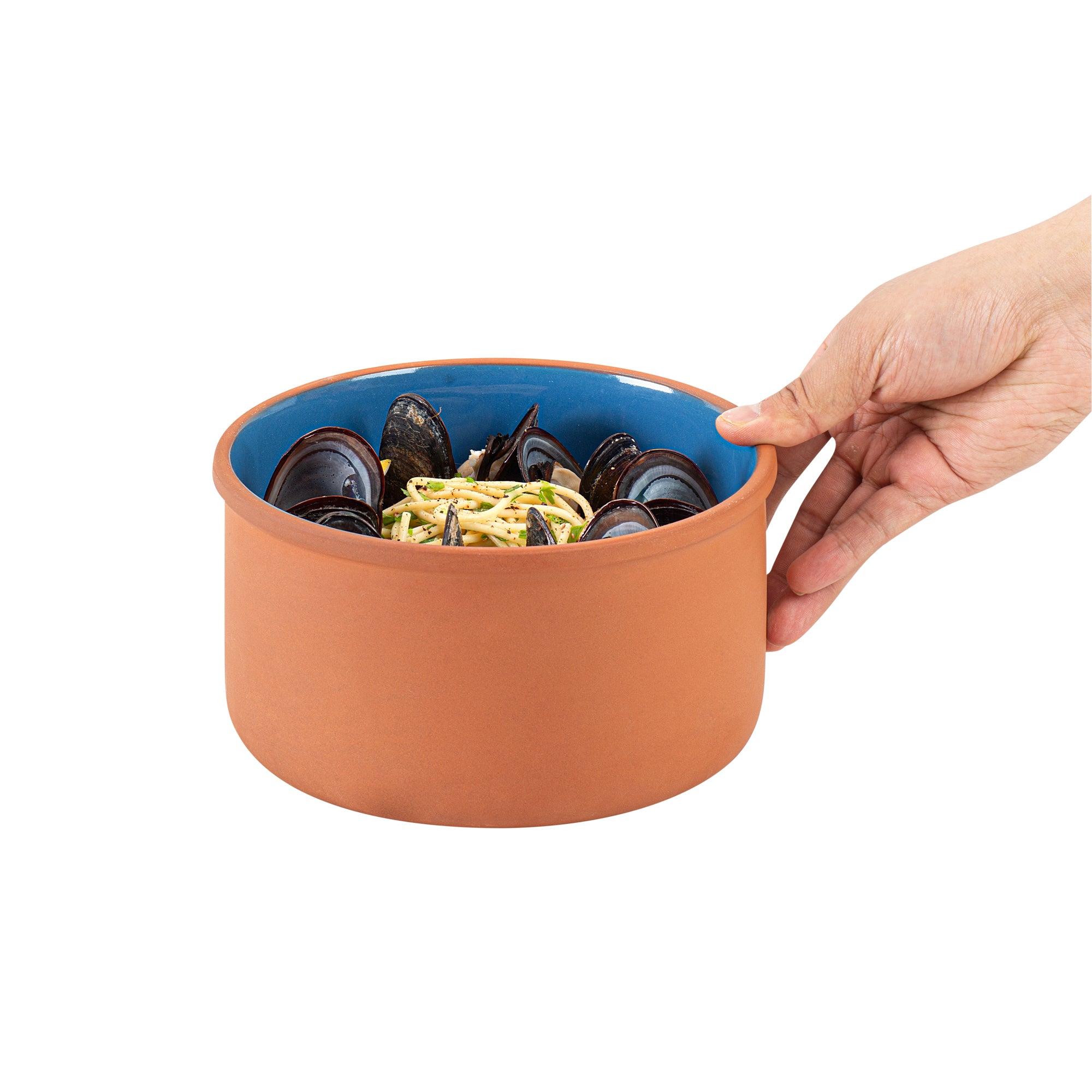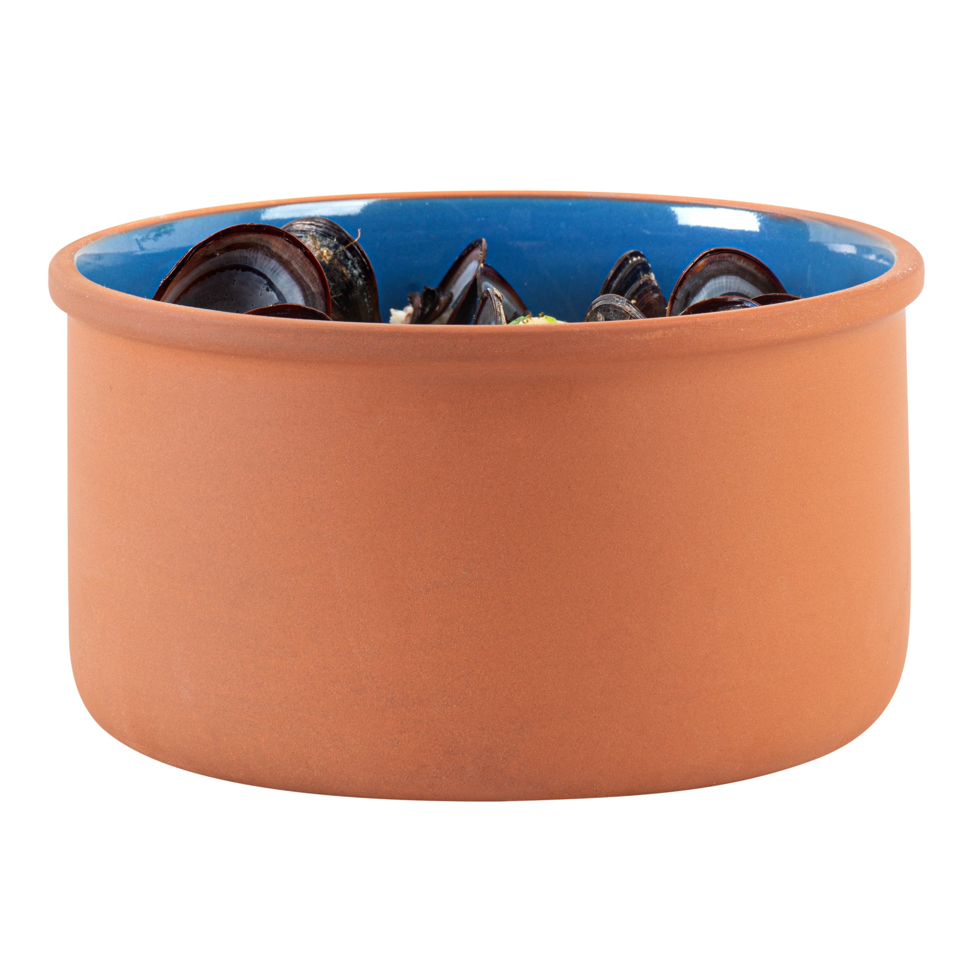 68 OZ TERRACOTTA CAZUELA BOWL - BLUE GLAZED INTERIOR, OVEN-SAFE