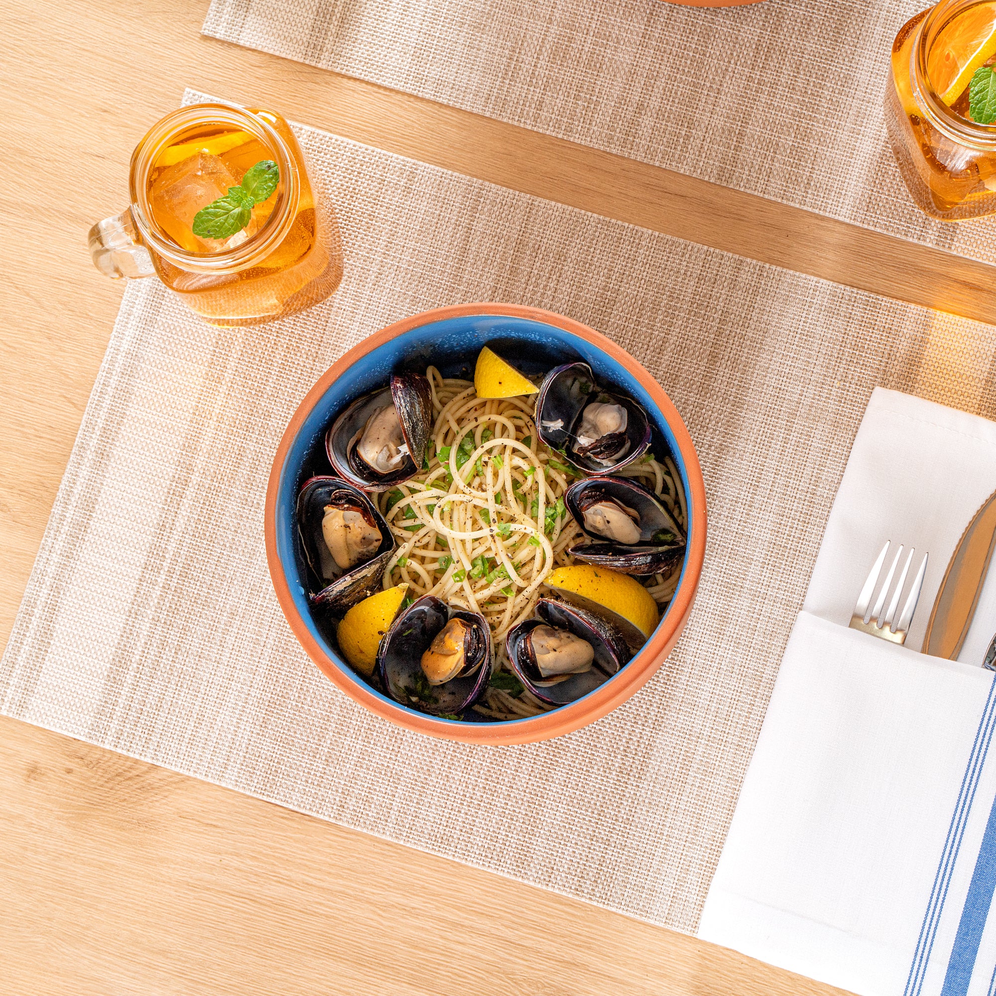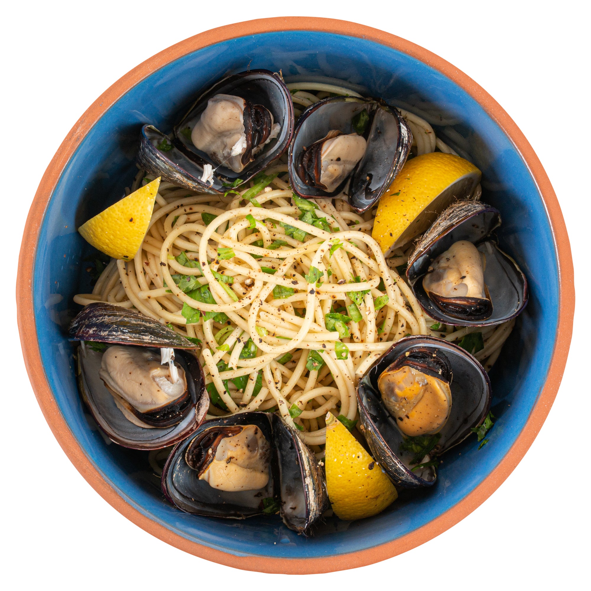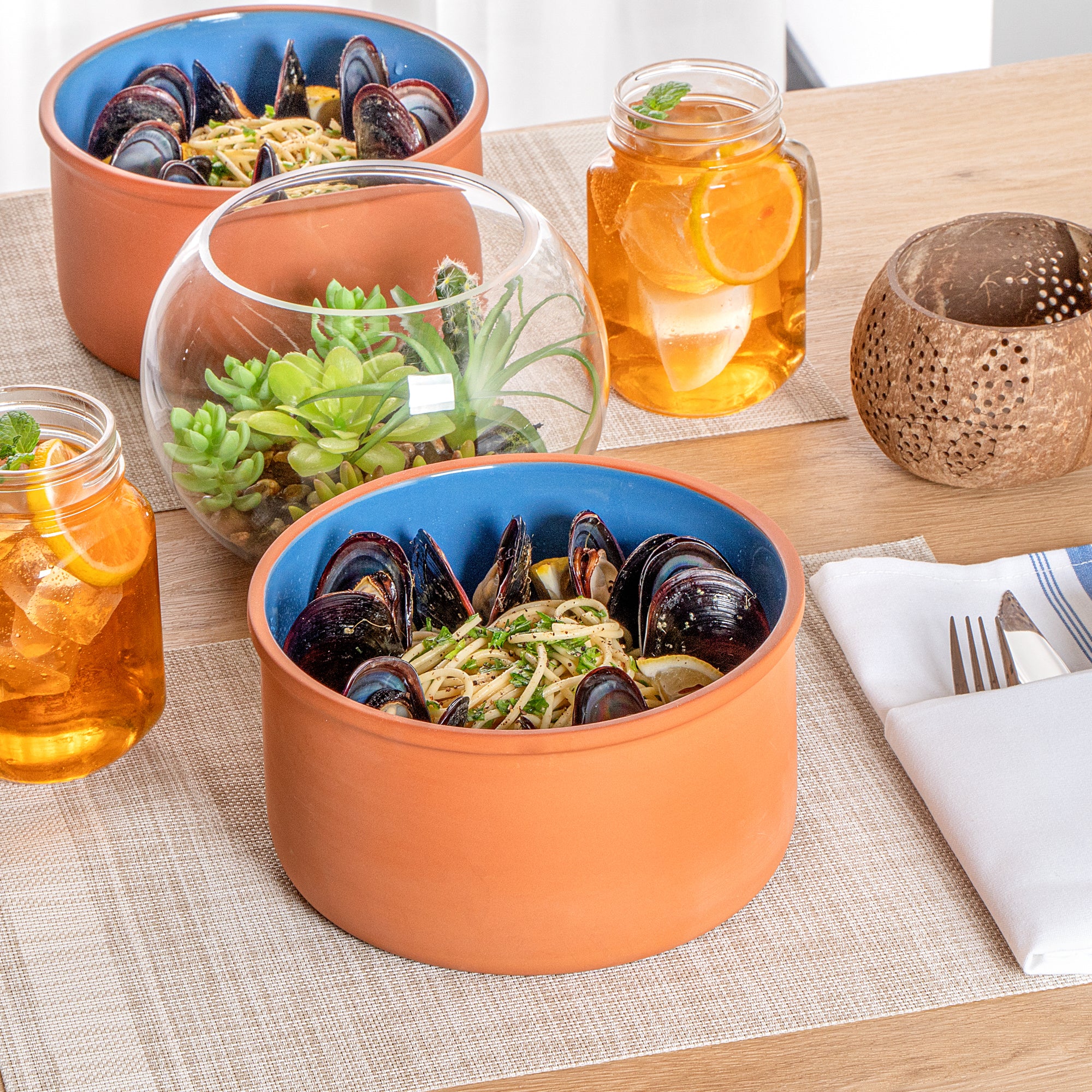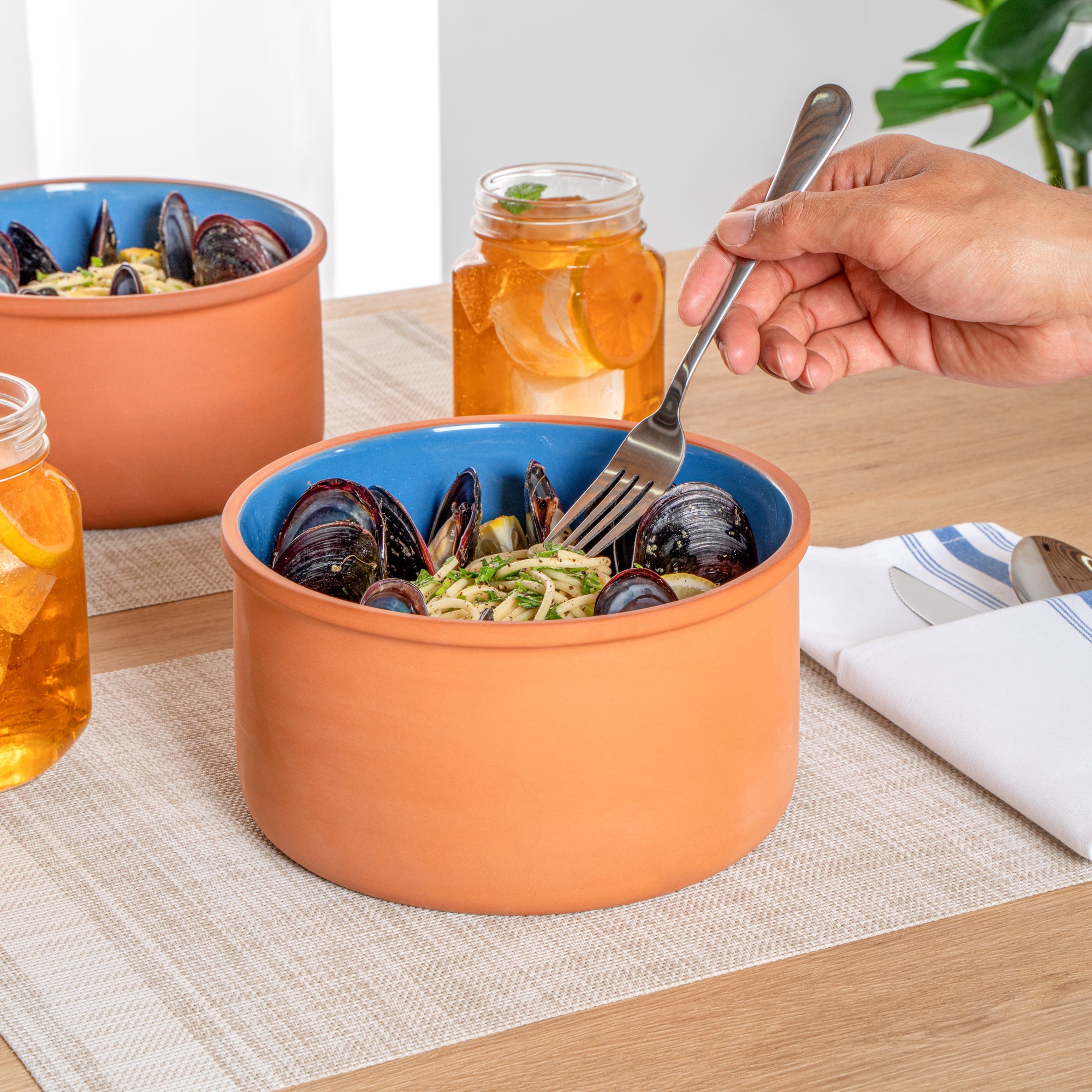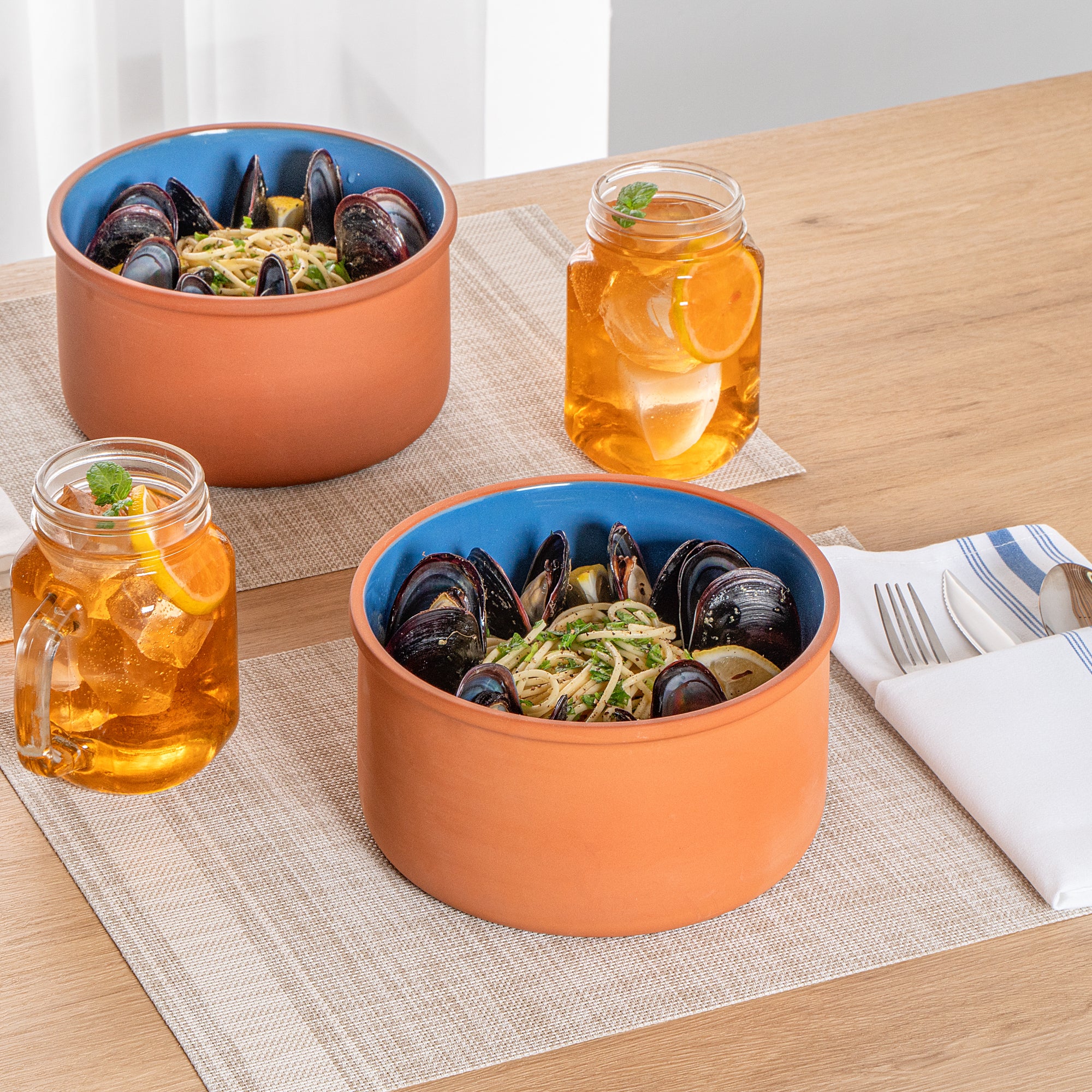 68 OZ TERRACOTTA CAZUELA BOWL - BLUE GLAZED INTERIOR, OVEN-SAFE