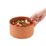 Bring the rustic charm of traditional Spanish cooking to your kitchen with our Terra Tek 68-ounce Terracotta Cazuela Bowls. Crafted from durable terracotta, these recyclable cazuela bowls are built to withstand the hustle and bustle of professional kitchens, providing a long-lasting solution for your culinary needs. With a beautifully glazed blue interior, these greaseproof glazed bowls add a pop of color to your dishes, enhancing their visual appeal. These oven-ready cooking bowls are perfect for a variety of dishes, from slow-cooked stews to baked desserts, offering versatility to your menu. Designed for convenience, these microwavable cooking bowls allow for quick, easy heating of meals, saving you prep time. Plus, these gourmet kitchen bowls are freezable, making them a handy addition to store leftovers. Containing 68 ounces, these dishwashable terracotta cazuelas are ideal for serving large portions or family-style meals. Measuring 7.5 inches in diameter by 4 inches in height, these brown greaseproof glazed bowls offer ample room for a variety of dishes, ensuring your culinary creations are always well presented. Sold in a 10 count box.
