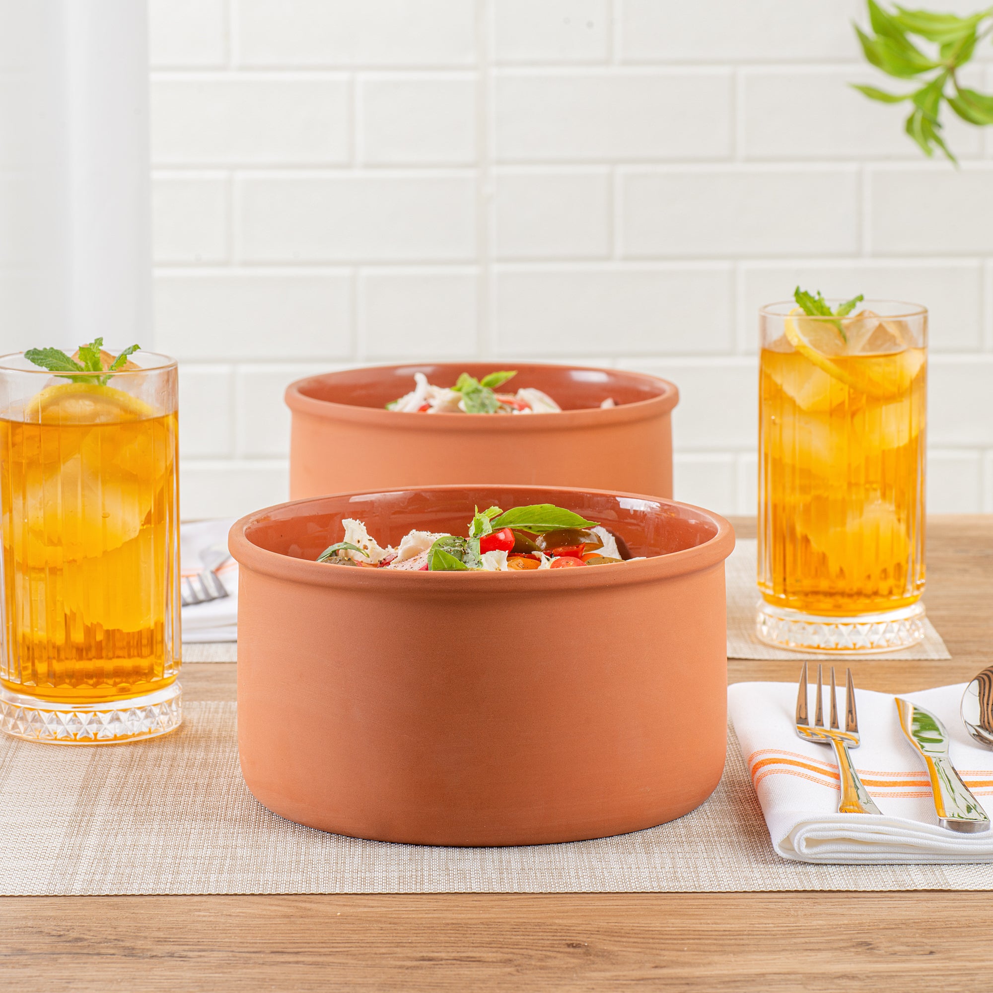 68 OZ TERRACOTTA CAZUELA BOWL - BROWN GLAZED INTERIOR, OVEN-SAFE,