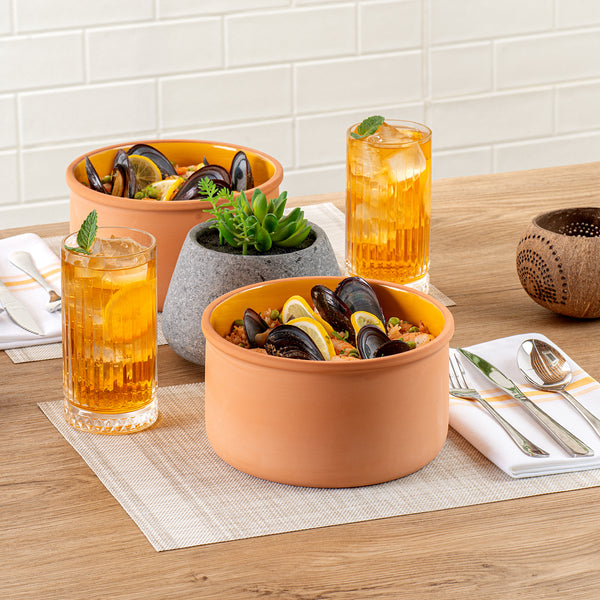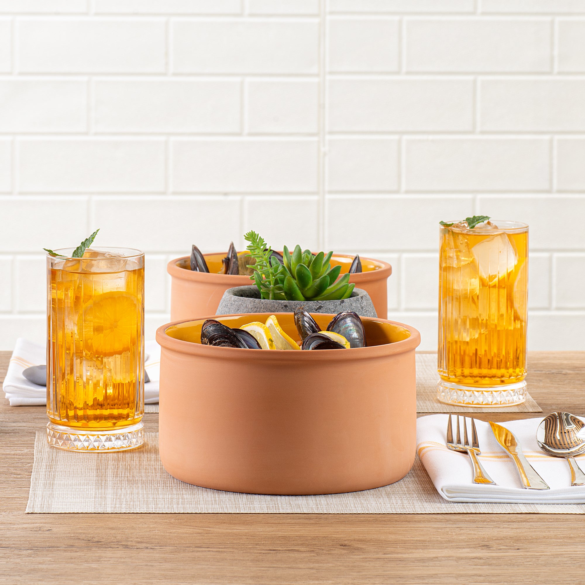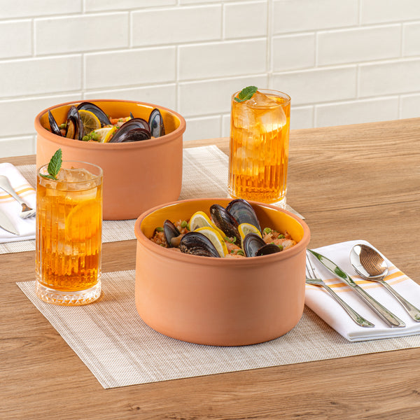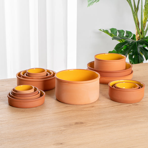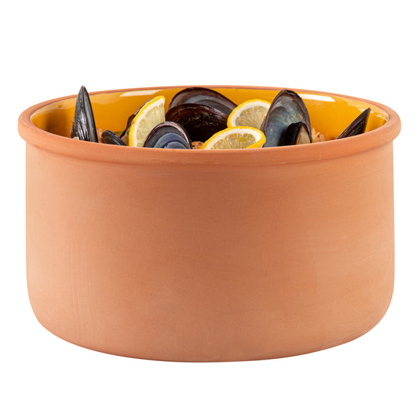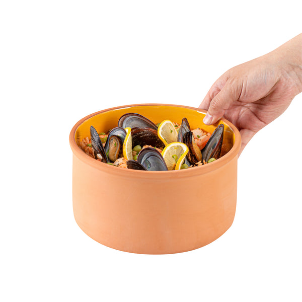 68 OZ TERRACOTTA CAZUELA BOWL - YELLOW GLAZED INTERIOR, OVEN-SAFE