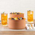 Elevate your presentation with our Terra Tek 68-ounce Terracotta Cazuela Bowls. Crafted from durable terracotta, these recyclable cazuela bowls bring a touch of rustic charm to any culinary setting. With yellow-glazed interiors, these terracotta bowls not only enhance the aesthetic appeal of your dishes but also ensure easy cleaning. These greaseproof glazed bowls are oven-ready, allowing you to bake, roast, or broil with ease. Plus, these microwave cooking bowls enable quick reheating, making them a favorite in busy kitchens. Offering a perfect solution for freezing meals, these gourmet kitchen bowls are freezable, ensuring freshness and quality are locked in. These terracotta cazuelas are dishwashable, enabling effortless cleaning post-meal. With a generous capacity of 68 ounces, these reusable cazuela bowls are perfect for serving large portions or family-sized meals. These terracotta cazuelas measure 7.5 inches in diameter by 4 inches in height, making them a compact yet spacious solution for your serving needs. Sold in a 10 count box.