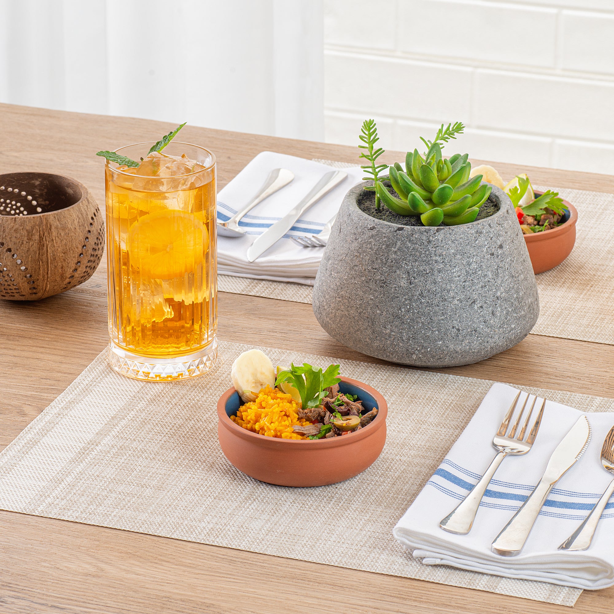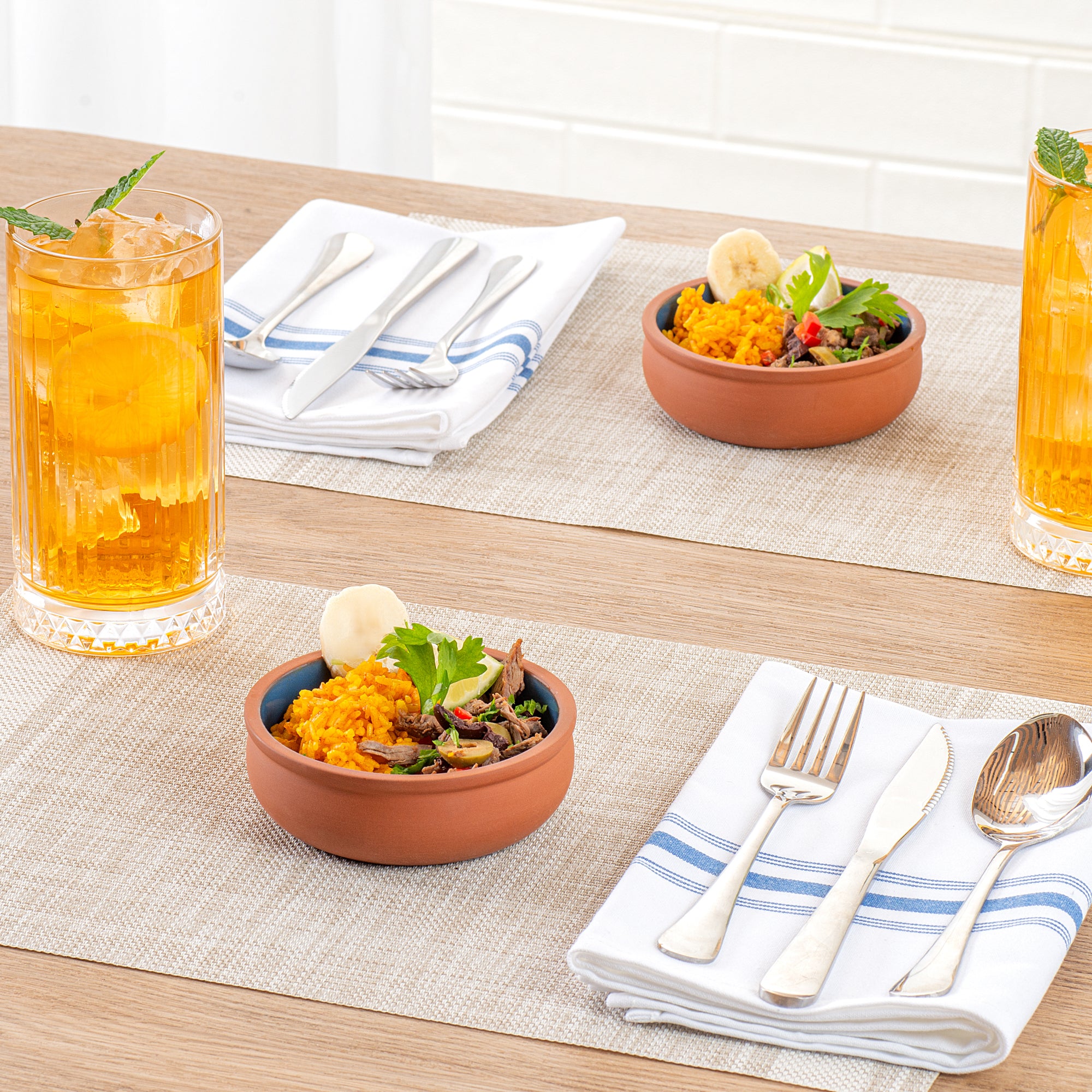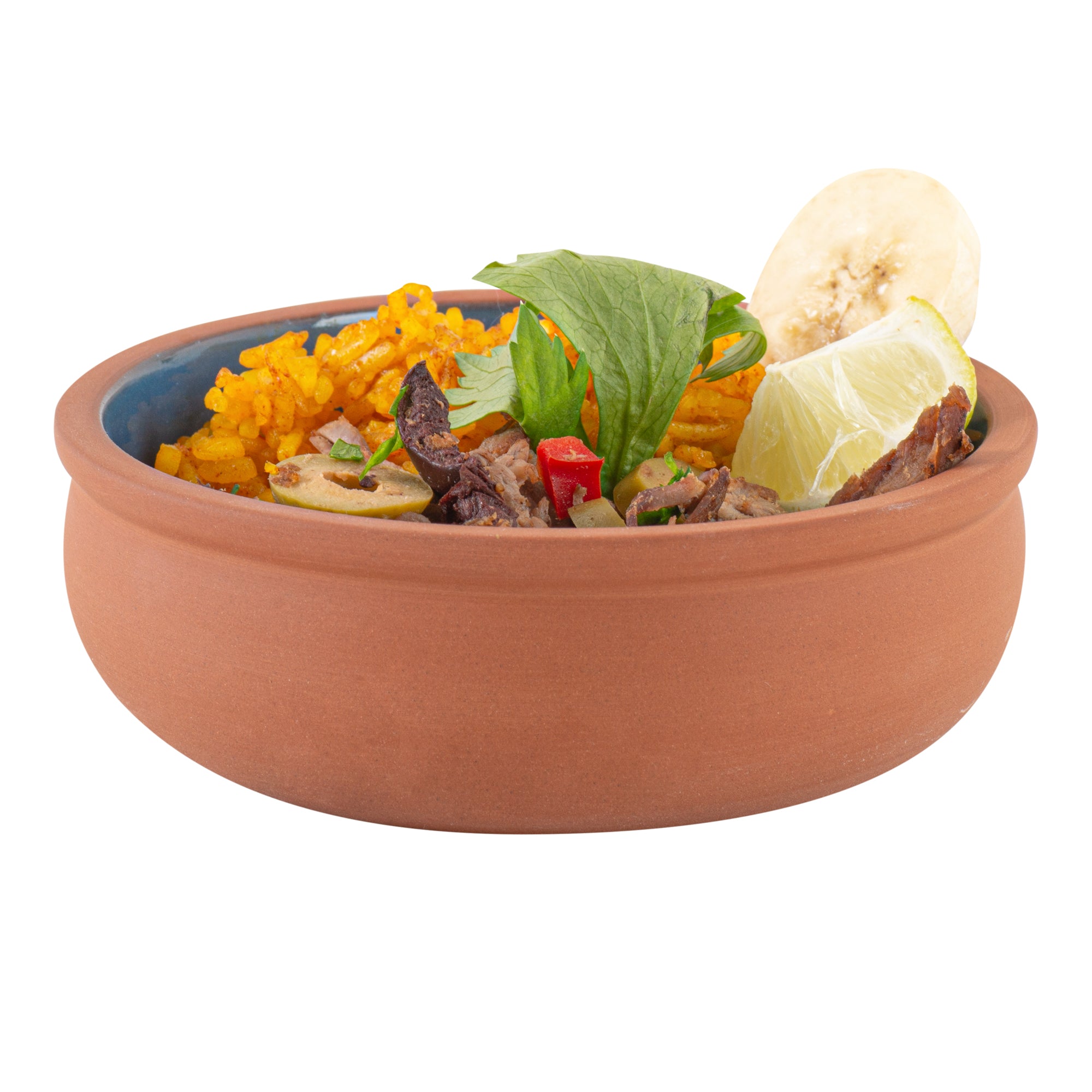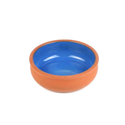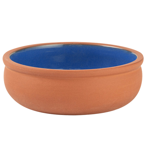 7 OZ TERRACOTTA CAZUELA BOWL - BLUE GLAZED INTERIOR, OVEN-SAFE