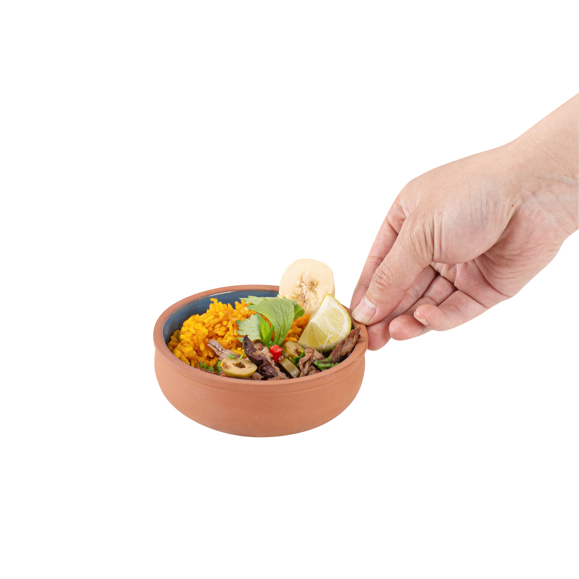 Elevate your culinary presentation with our Terra Tek 7-ounce Terracotta Cazuela Bowls. Expertly crafted from durable terracotta, these recyclable cazuela bowls offer a long-lasting solution for your restaurant or catering business. The blue glazed interior of these greaseproof glazed bowls adds a vibrant pop of color, elevating the aesthetic appeal of your dishes. Perfect for a variety of meals, these oven-ready cooking bowls can go straight from the oven to the table, offering versatility and convenience. To cover your reheating and food storage needs, these microwave cooking bowls are both microwavable and freezable. For easy cleanup after a busy service, these gourmet kitchen bowls are dishwashable. Each of these reusable terracotta bowls has a generous capacity of 7 ounces, making them ideal for serving hearty stews or decadent desserts. Measuring 4.5 inches in diameter by 1.5 inches in height, these blue greaseproof glazed bowls are compact yet spacious enough to hold a variety of dishes. Sold in a 10 count box.