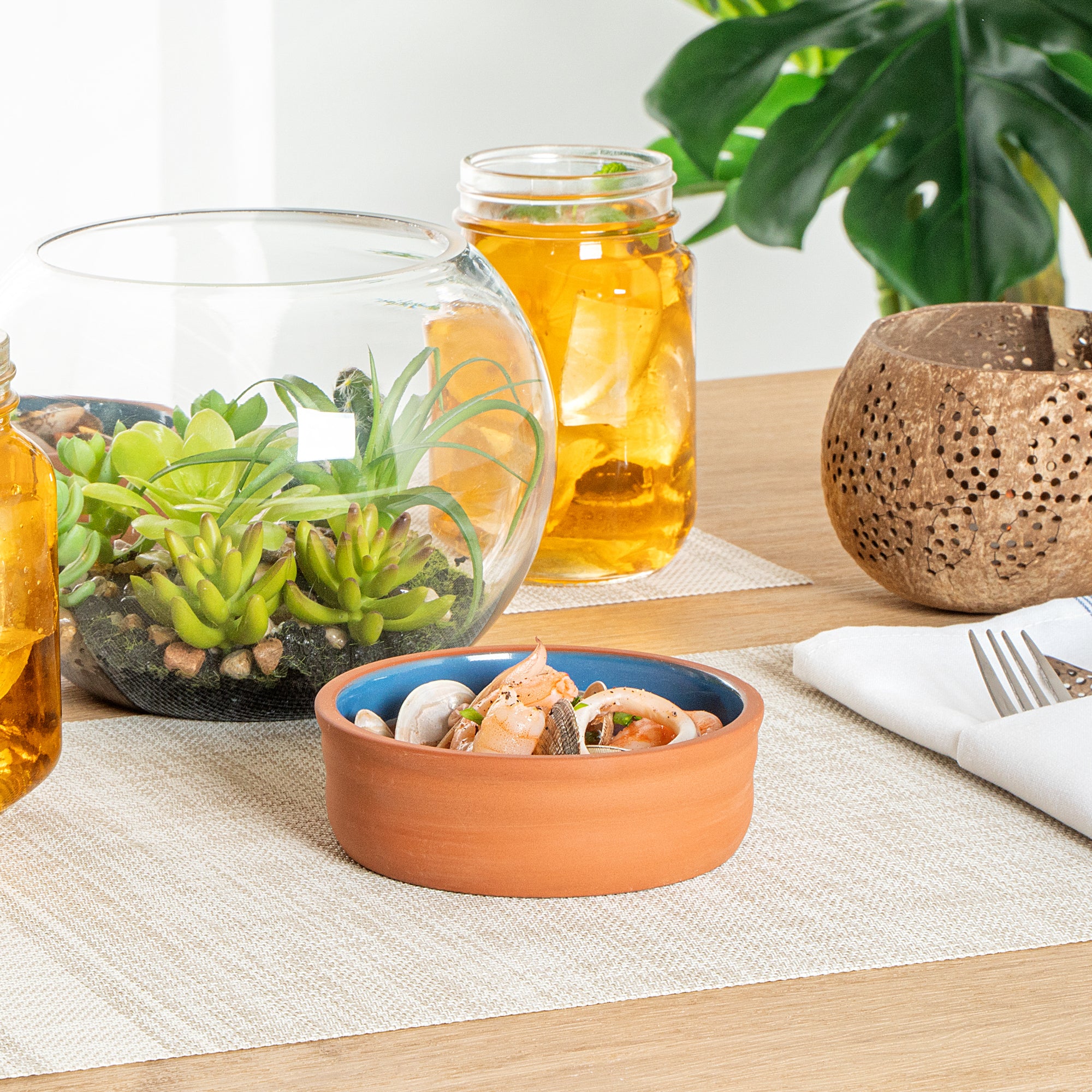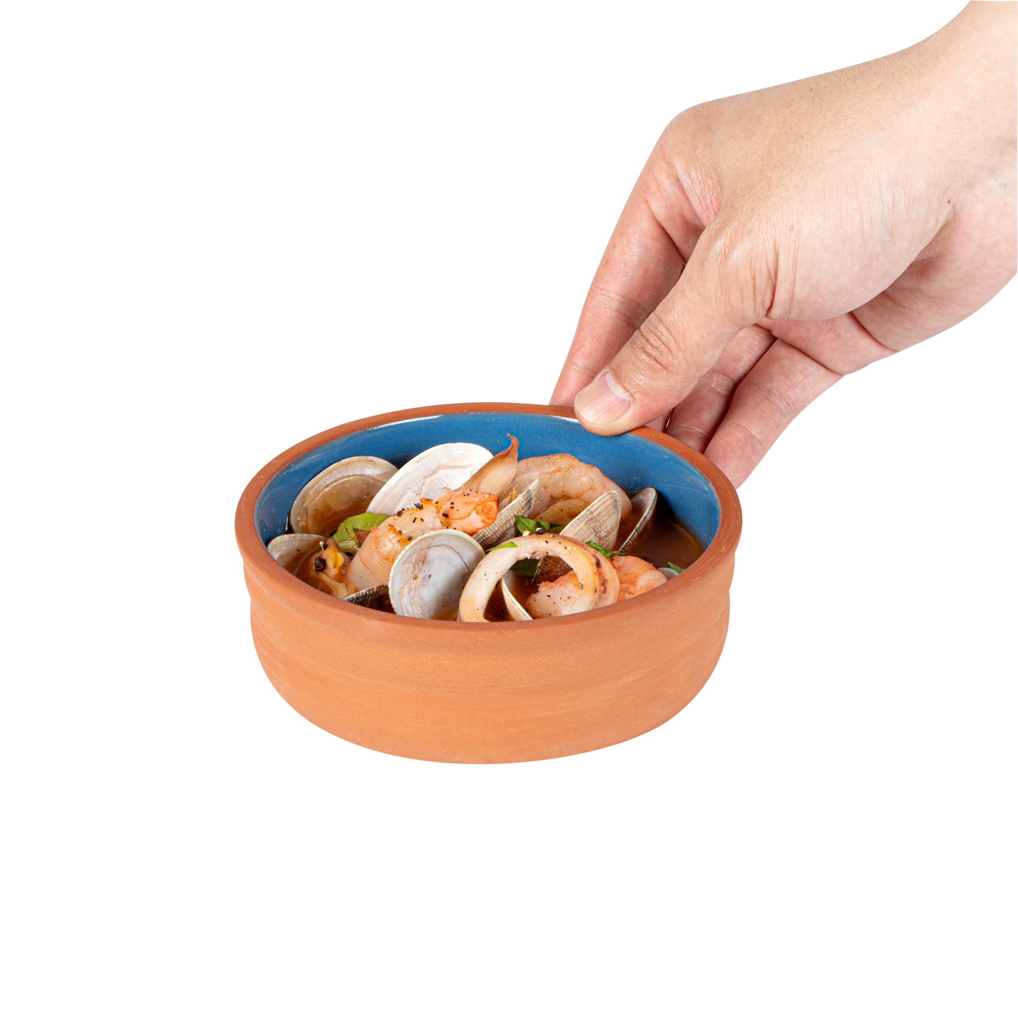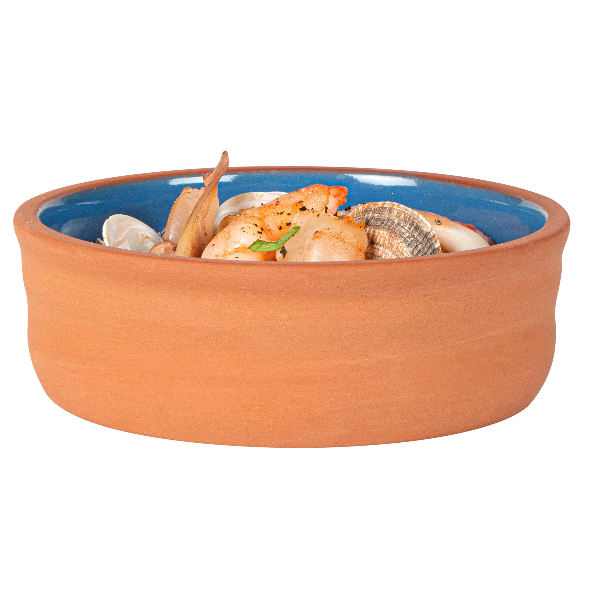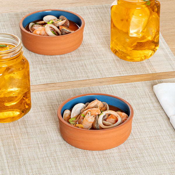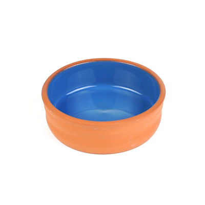 7 OZ TERRACOTTA CAZUELA BOWL - BLUE GLAZED INTERIOR, OVEN-SAFE