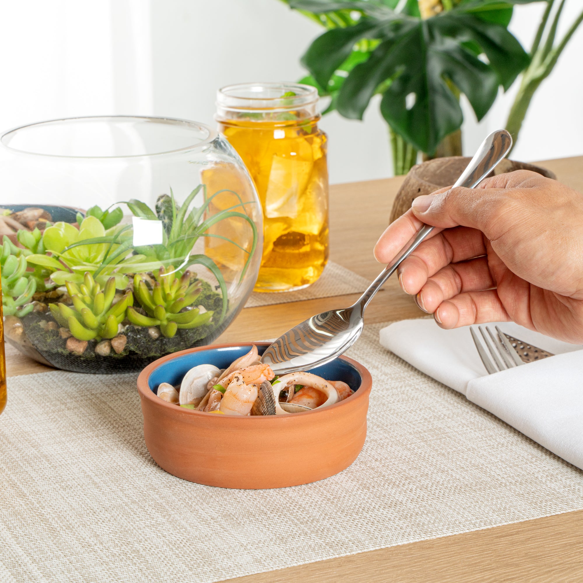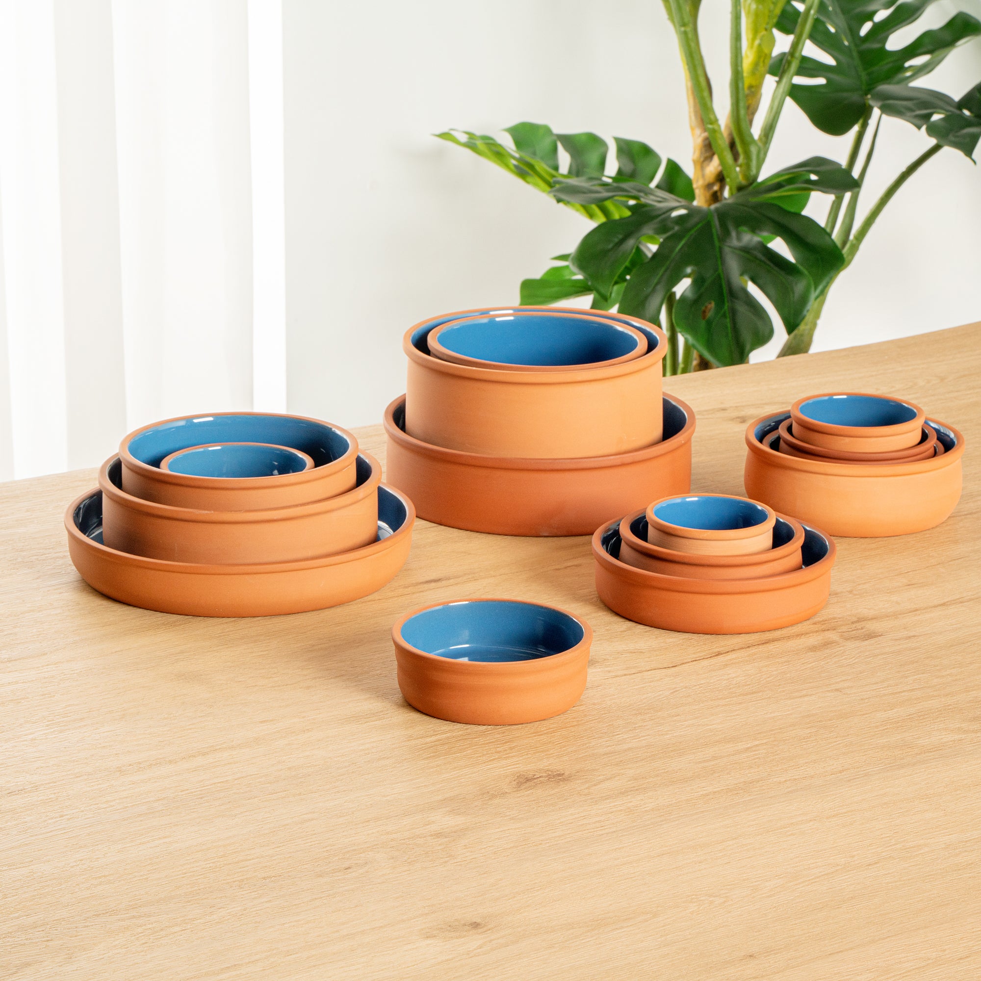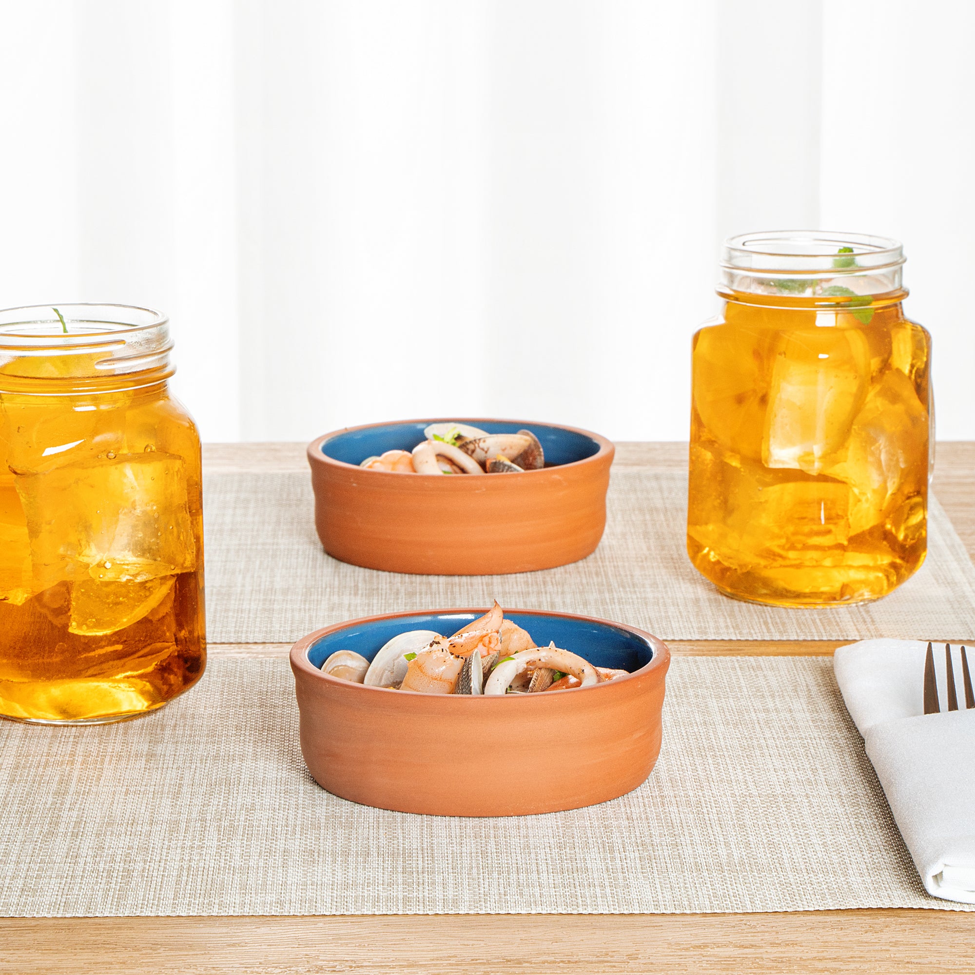 7 OZ TERRACOTTA CAZUELA BOWL - BLUE GLAZED INTERIOR, OVEN-SAFE