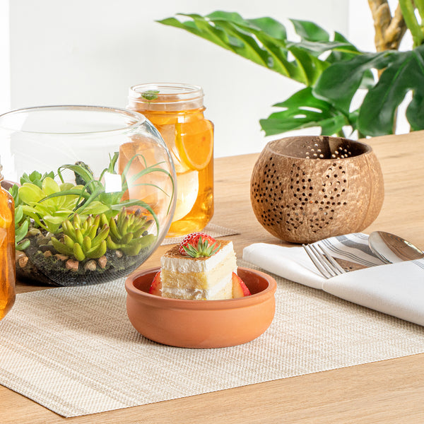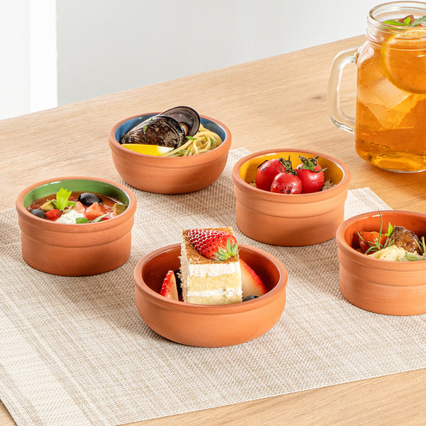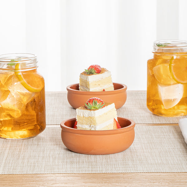 7 OZ TERRACOTTA CAZUELA BOWL - BROWN GLAZED INTERIOR, OVEN-SAFE